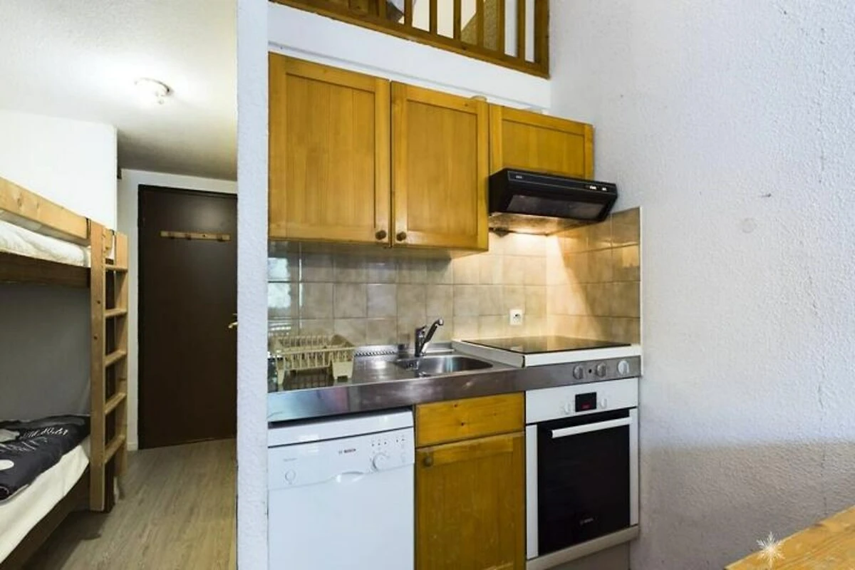 In cima alle Alpi francesi, dove l'aria frizzante di montagna rinvigorisce i sensi, sorge l'affascinante residence Les Ibouquetins. Perfettamente posizionato ai piedi delle piste, questo accogliente rifugio offre un'idilliaca fuga alpina per chi cerca avventura e tranquillità in egual misura. A soli 200 metri dai negozi locali e a soli 50 metri dall'asilo nido, la comodità incontra il comfort in questa posizione privilegiata. Che siate qui per sfrecciare sulla neve fresca o semplicemente per godervi la serena vista sulle montagne, questa proprietà è la vostra porta d'accesso al meglio delle Alpi. Il monolocale al piano rialzato, situato al terzo piano con ascensore, è progettato con cura per ospitare fino a quattro persone. L'ingresso dispone di due comodi letti a castello e ampio spazio di archiviazione, mentre il soppalco offre un comodo letto matrimoniale per notti di riposo. L'angolo cottura è dotato di piano cottura alogeno, frigorifero, forno e lavastoviglie, rendendo facile preparare pasti abbondanti dopo una giornata sulle piste. Rilassatevi nell'accogliente zona giorno e godetevi i vostri programmi preferiti in TV, oppure uscite sul balcone esposto a nord per ammirare lo spettacolare paesaggio alpino. Si prega di notare che la pulizia di fine soggiorno, la biancheria da letto e gli asciugamani sono disponibili a un costo aggiuntivo. \n\nOltre la soglia di casa, vi attende la vivace atmosfera del villaggio. Esplorate i negozi vicini, assaporate la cucina savoiarda locale o lanciatevi in emozionanti avventure sugli sci con le piste a pochi passi. In estate, il paesaggio si trasforma in un paradiso per escursionisti e amanti della natura, con sentieri che conducono a panorami mozzafiato e tesori alpini nascosti. Che viaggiate con la famiglia o con gli amici, Les Ibouquetins offre la base perfetta per creare ricordi indimenticabili nel cuore delle Alpi francesi.