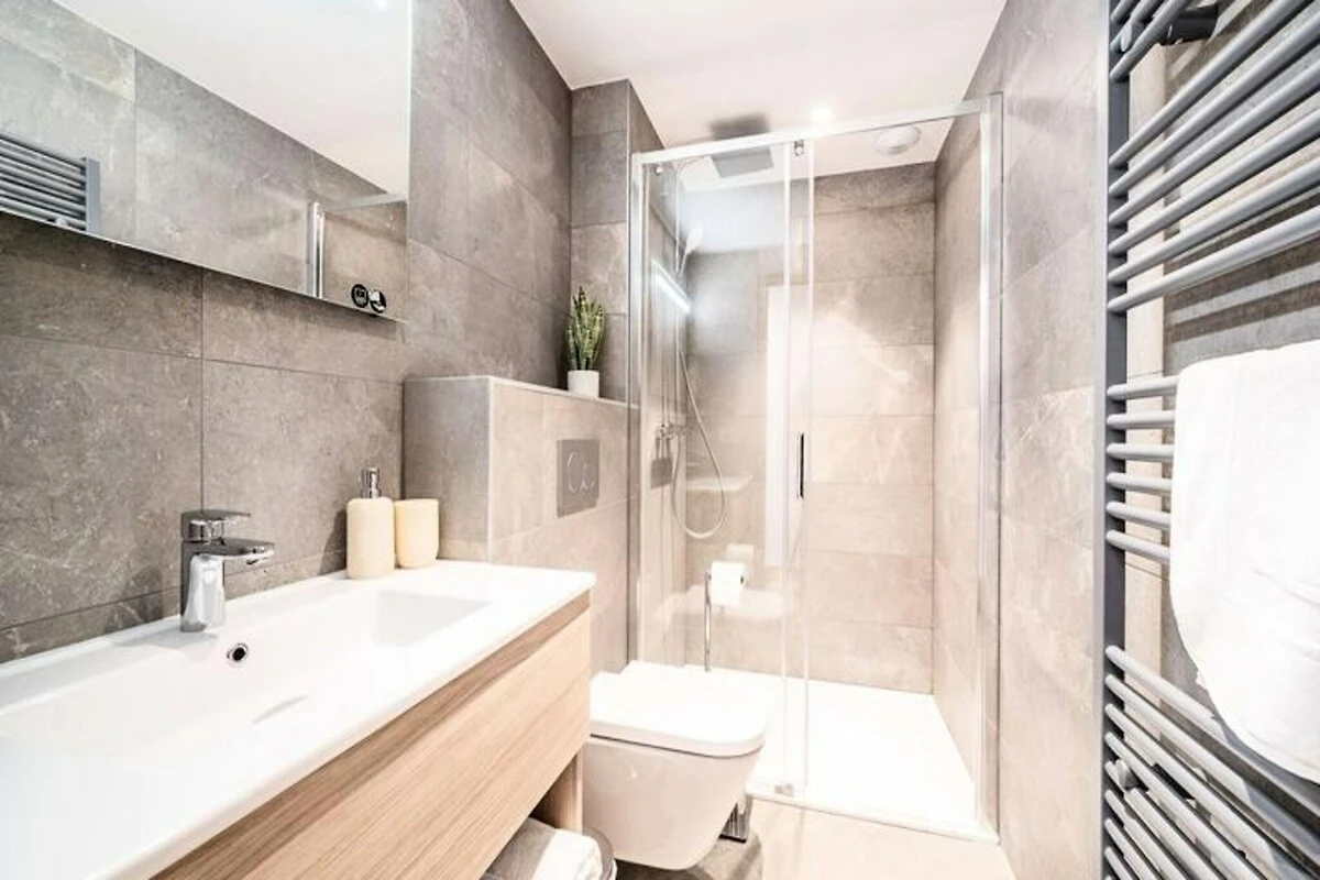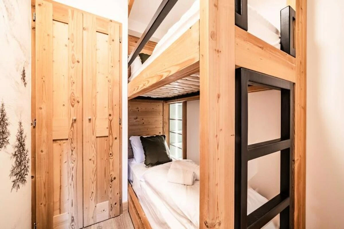 Con una superficie di 84 m², l'appartamento può ospitare comodamente da 6 a 8 persone. L'ampia zona giorno dispone di una cucina a pianta aperta completamente attrezzata, un accogliente soggiorno con TV e una zona pranzo ideale per pasti in comune. Due eleganti camere da letto offrono una sistemazione flessibile per la notte con letti singoli o matrimoniali, ciascuna con bagno privato con doccia e servizi igienici. Una terza camera da letto con letto matrimoniale e una zona notte con letti a castello condividono un ulteriore bagno con doccia e servizi igienici. Servizi moderni come Wi-Fi, lavatrice, asciugatrice e lavastoviglie garantiscono un soggiorno senza intoppi, mentre il garage, il parcheggio sotterraneo e la cantina per gli sci offrono ulteriore comfort.