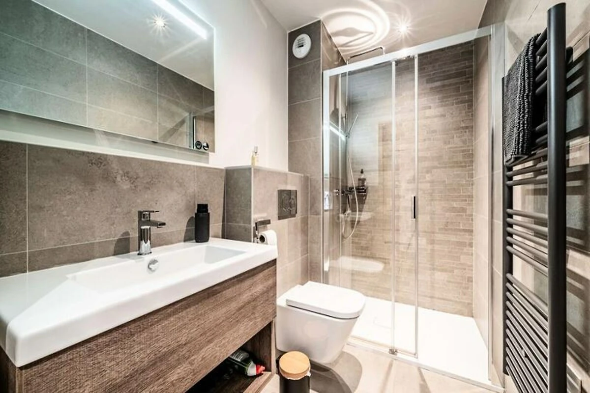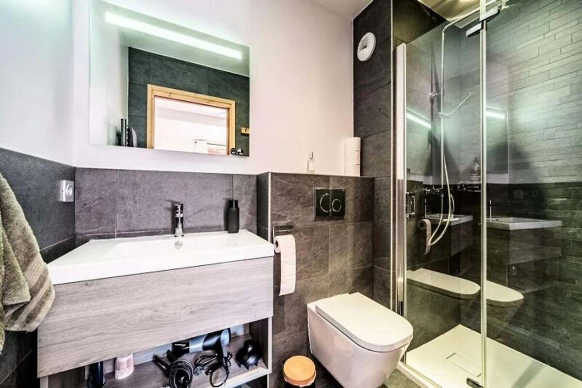 Situato al secondo piano di un edificio moderno con ascensore, l'appartamento è stato progettato con cura per ottimizzare sia lo spazio che lo stile. La zona giorno open space comprende un accogliente salotto, una zona pranzo e una cucina completamente attrezzata, tutte con accesso a una terrazza privata con splendida vista sulle montagne. Due camere da letto offrono rifugi rilassanti, di cui una con letto matrimoniale e bagno privato con doccia, e un'altra con due letti singoli. Una zona notte separata con letti a castello aggiunge flessibilità, mentre il bagno con doccia aggiuntivo garantisce la comodità per tutti gli ospiti. Comfort moderni come il Wi-Fi, una lavatrice-asciugatrice e un armadietto per gli sci con asciuga scarponi arricchiscono il vostro soggiorno, mentre due posti auto privati sotterranei rendono l'arrivo e la partenza senza intoppi.