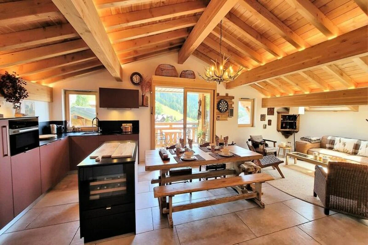In un tranquillo borgo di Les Gets, questo splendido appartamento all'ultimo piano offre un mix armonioso di fascino alpino e lusso moderno. Inondato di luce naturale e coronato da travi a vista, questo rifugio di 88 m² (110 m² in totale) vi invita a rilassarvi in un ambiente tranquillo, a pochi passi dalle piste da sci di Perrières. La terrazza esposta a sud-ovest offre una vista mozzafiato sulle montagne circostanti, rendendola il luogo perfetto per rilassarsi dopo una giornata di avventure. Che si tratti di sorseggiare un caffè al sole del mattino o di osservare le stelle di notte, questo spazio promette momenti indimenticabili.