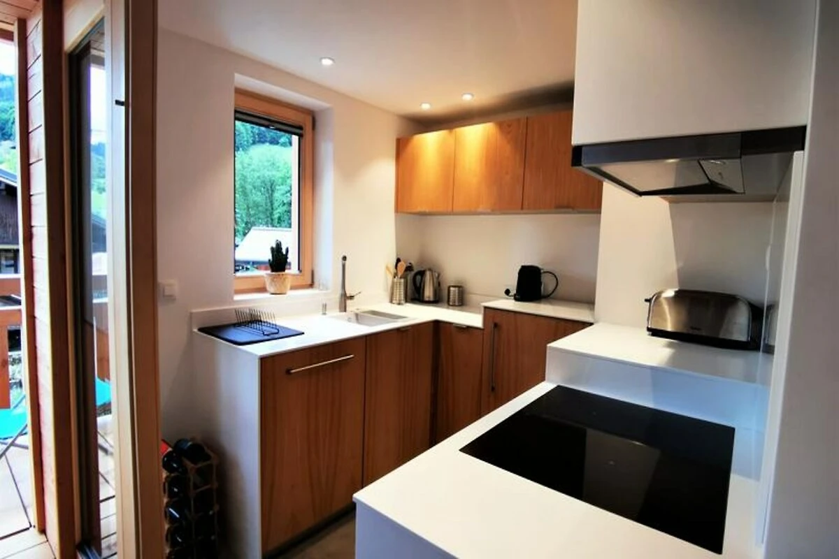 Immerso nella serenità di un tranquillo borgo di montagna, questo appartamento contemporaneo vi invita a rilassarvi immersi nella bellezza alpina mozzafiato. Completato nel 2021, il residence coniuga un'eleganza moderna con un fascino caldo e soleggiato, offrendo viste a sud-ovest che riempiono l'ambiente di luce naturale. Che vi godiate l'aria frizzante di montagna sulla terrazza o momenti di relax all'interno, questo rifugio è perfetto per creare ricordi indelebili. A pochi passi dalle piste da sci di Les Perrières, è la base ideale sia per gli amanti degli sport invernali che per gli amanti delle avventure estive. Progettato per offrire comfort ed eleganza, l'appartamento può ospitare fino a quattro persone in due camere da letto arredate con cura. La camera da letto principale dispone di un comodo letto matrimoniale, mentre la seconda camera offre letti a castello, TV e lettore DVD, rendendolo ideale per le famiglie. La zona giorno open space è uno spazio accogliente dove riunirsi, con cucina completamente attrezzata, zona pranzo e un accogliente salotto che si apre sulla terrazza. Comfort moderni come cabina doccia, scaldasalviette e riscaldamento autonomo a pompa di calore garantiscono un soggiorno rilassante. \n\nSituato in posizione strategica, il residence dista solo 450 metri dalle piste da sci più vicine e 600 metri da un supermercato. Il centro del paese, con i suoi graziosi negozi e ristoranti, è raggiungibile in soli 10 minuti a piedi, mentre un servizio navetta ferma a soli 50 metri dalla porta. In estate, esplorate sentieri panoramici o assaporate le delizie culinarie locali, tutte facilmente raggiungibili. \n\nChe siate alla ricerca di emozionanti giornate sugli sci, tranquille fughe in montagna o momenti di condivisione con i vostri cari, questo appartamento offre il perfetto mix di comfort, praticità e fascino alpino. Lasciate che la magia della montagna ispiri la vostra prossima vacanza.