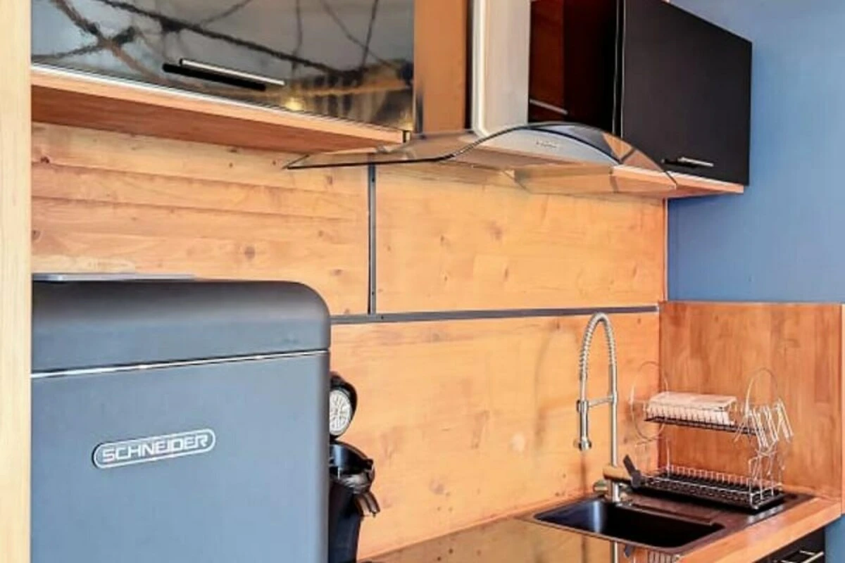 Il luminoso e arioso soggiorno dell'appartamento è un'oasi di comfort, con una zona pranzo, un accogliente angolo relax e una cucina completamente attrezzata dove potrete preparare i pasti insieme. Le ampie finestre incorniciano una splendida vista sul mare, aggiungendo un tocco di magia alle vostre mattine. Al piano superiore, la tranquilla camera da letto con un soffice letto matrimoniale assicura notti tranquille, avvolgendovi in un'atmosfera di pace che completa il fascino di questo rifugio costiero.