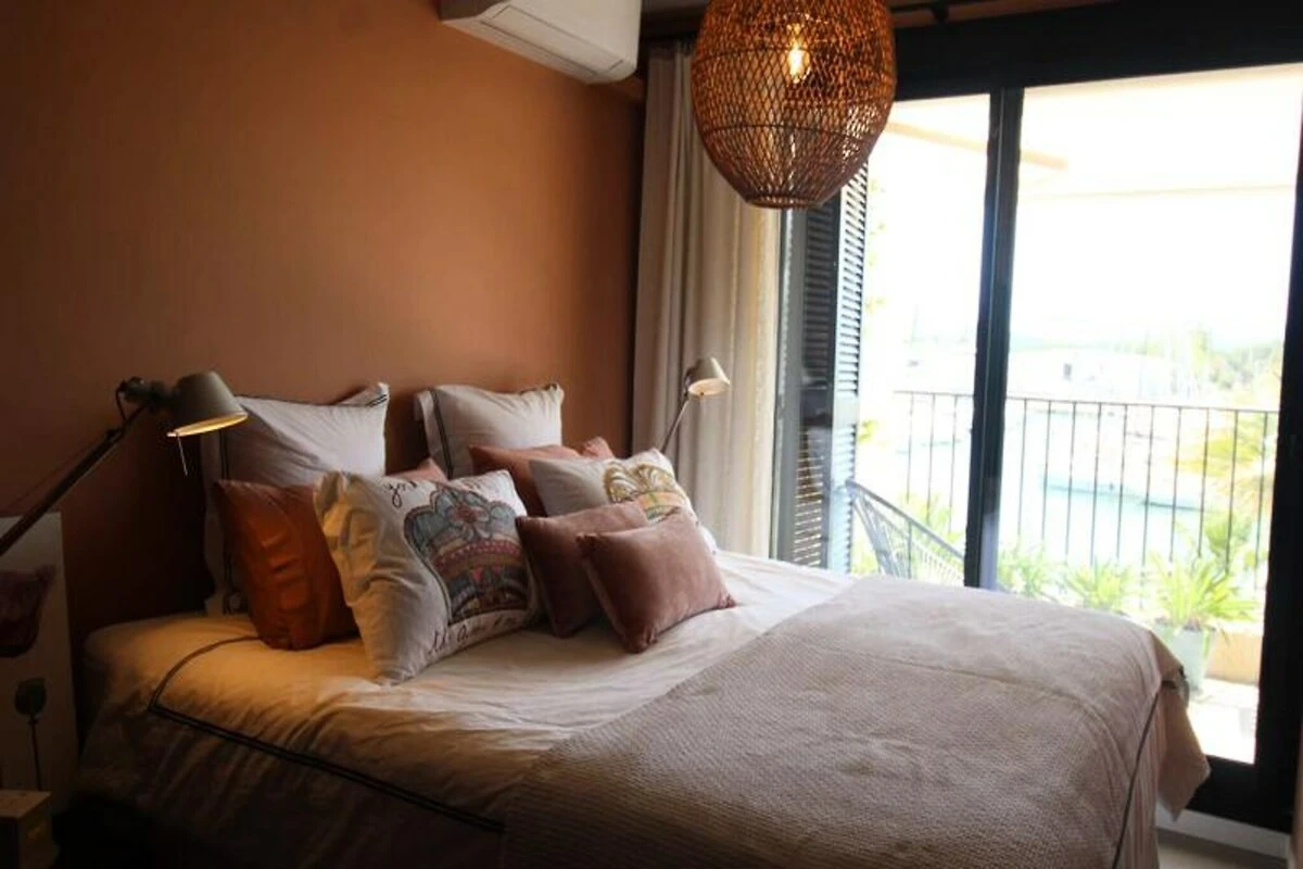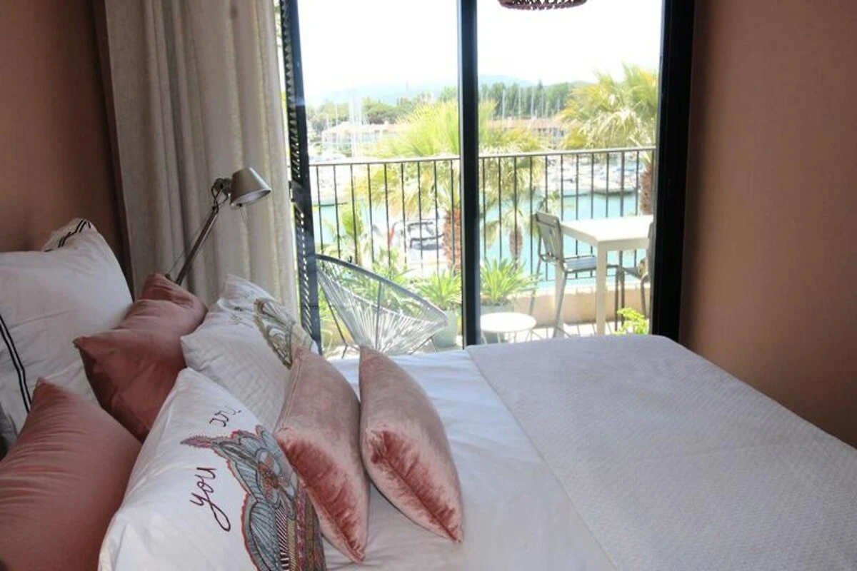 Affacciato sul tranquillo porto turistico di Cogolin, questo elegante appartamento nella prestigiosa residenza "La Brigantine" offre una fuga tranquilla con un tocco di lusso. Dalla sua posizione privilegiata al secondo piano, godrete di una vista ininterrotta sul pittoresco porto, dove il dolce ondeggiare delle barche crea un'atmosfera rilassante. Che sorseggiate il caffè del mattino o cenate all'aperto sulla terrazza, la bellezza del porto turistico offre lo sfondo perfetto per il vostro soggiorno. \n\nInternamente, l'appartamento è progettato con cura, con comfort moderni e un arredamento di buon gusto. La cucina a pianta aperta, completa di isola centrale, è completamente attrezzata con elettrodomestici di alta gamma, tra cui lavastoviglie, forno, piano cottura e macchina da caffè a capsule. La zona pranzo e il soggiorno adiacenti, dotati di una grande TV a schermo piatto, creano uno spazio accogliente per il relax. La camera da letto vanta un lussuoso letto king-size, un ampio armadio e accesso diretto alla terrazza, mentre l'elegante bagno con cabina doccia e WC separato garantisce comodità e privacy. L'aria condizionata in ogni camera garantisce il massimo comfort durante il soggiorno. Gli ospiti possono inoltre usufruire dei servizi del residence, tra cui una piscina comune disponibile durante i mesi estivi con bagnino. Il parcheggio è disponibile all'interno del residence e comode opzioni di trasporto, come il servizio navetta "Les Bateaux Verts", rendono semplice l'esplorazione della vicina Saint-Tropez. Un servizio navetta gratuito all'interno dei Marines de Cogolin aggiunge ulteriore comodità. Che siate attratti dal fascino del porto turistico, dal fascino di Saint-Tropez o semplicemente dalla promessa di un rifugio tranquillo, questo appartamento offre un'indimenticabile vacanza costiera. Lasciate che il ritmo dolce del porto e lo stile di vita mediterraneo diano il tono alla vostra vacanza perfetta.
