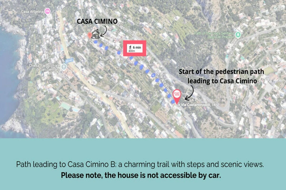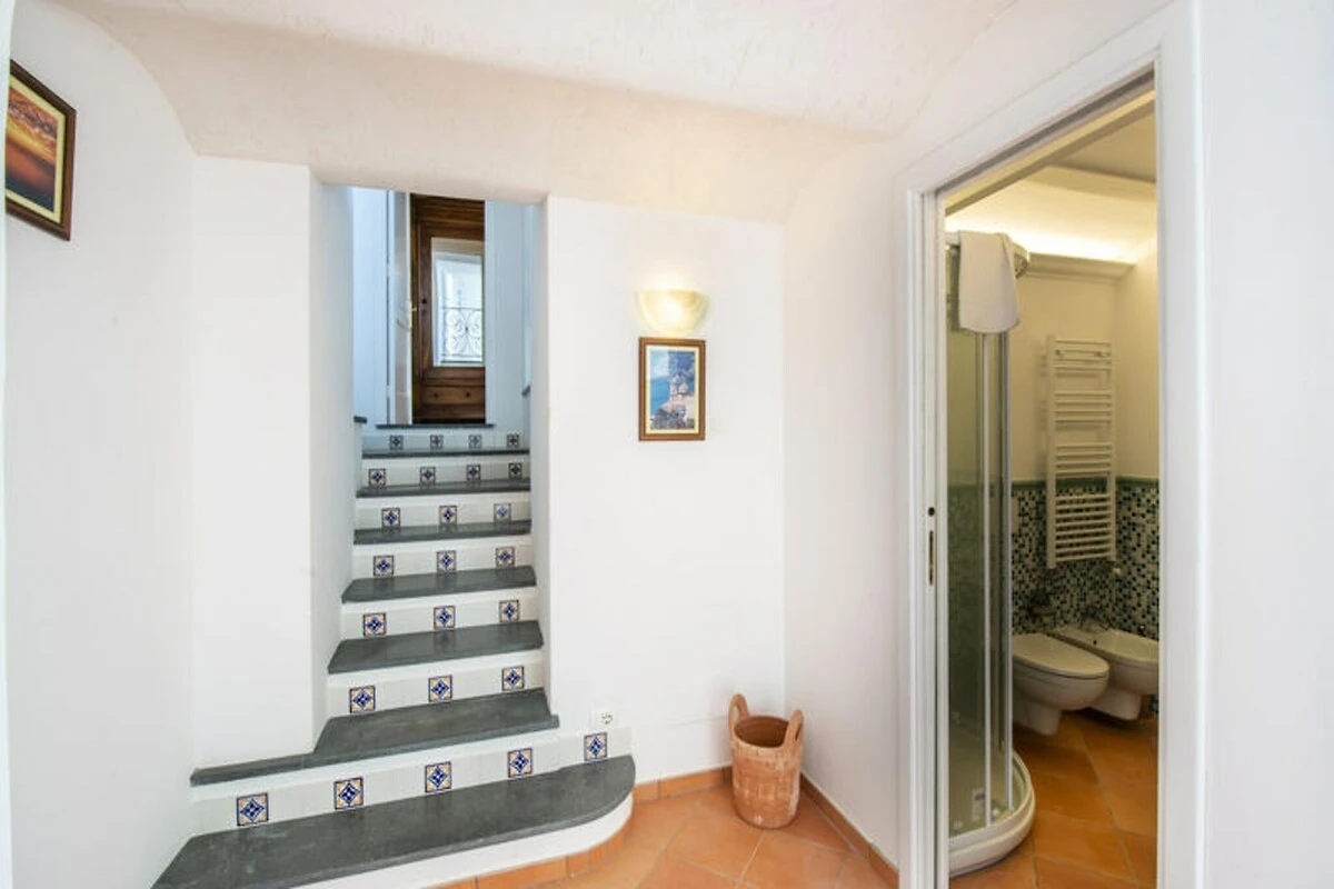 Arroccata sul versante occidentale di Praiano, Villa Imperati offre un rifugio incantevole con vista panoramica su Positano e Capri. Questa villa, recentemente ristrutturata, coniuga l'eleganza moderna con il fascino della Costiera Amalfitana, creando un rifugio sereno per i viaggiatori in cerca di bellezza e tranquillità. Immaginate serate trascorse a guardare il sole tramontare all'orizzonte dalla vostra piscina privata all'aperto, circondata da rigogliosi giardini attrezzati con lettini, una doccia esterna e un'area barbecue perfetta per cene all'aperto. La posizione unica della villa, accessibile solo tramite un pittoresco sentiero pedonale e una scalinata, immerge gli ospiti nell'atmosfera autentica di questo incantevole villaggio. Distribuita su due piani, la villa vanta interni spaziosi pensati per il comfort e il relax. Al piano terra, un luminoso soggiorno si apre direttamente sul giardino, mentre la cucina completamente attrezzata invita alla creatività culinaria. Le camere da letto, tra cui una matrimoniale e una singola flessibile, offrono accesso privato al giardino. Al piano superiore, la camera da letto principale dispone di una terrazza privata con vista mozzafiato sul mare, completata da un lussuoso bagno con vasca idromassaggio e vista sulla costa. Ogni dettaglio è stato curato con cura per garantire un soggiorno indimenticabile. \n\nA pochi passi troverete graziosi servizi locali come bar, ristoranti e un piccolo negozio di alimentari. Per gli amanti della spiaggia, il One Fire Beach Club è a soli 20 minuti a piedi, mentre i mezzi pubblici, inclusi gli autobus locali e Sita, sono comodamente raggiungibili nelle vicinanze. Si prega di notare che la disposizione e l'accesso della villa potrebbero non essere adatti agli ospiti con mobilità ridotta, ma la sua posizione unica promette un'esperienza impareggiabile della bellezza senza tempo di Praiano. Che stiate esplorando la Costiera Amalfitana o semplicemente rilassandovi a bordo piscina, Villa Imperati è la scelta perfetta per una vacanza da sogno.