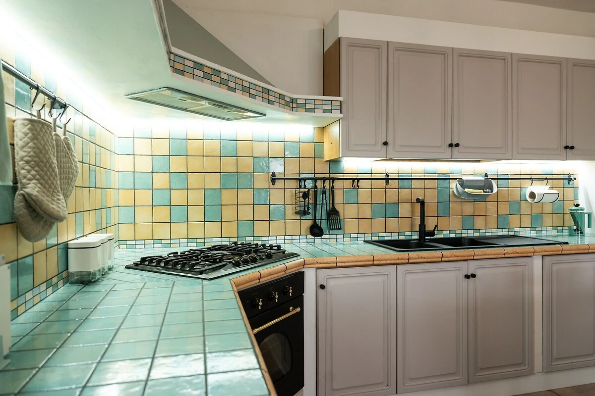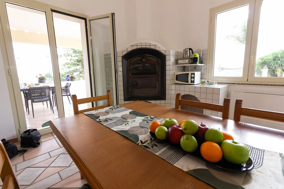All'interno, l'atmosfera è luminosa, semplice e accogliente. Il soggiorno offre una comoda area salotto, TV e un tavolo da pranzo per i pasti in comune, mentre la cucina a vista è completamente attrezzata con forno, microonde, tostapane, bollitore, piano cottura e frigorifero con congelatore, perfetta per preparare specialità locali dopo una visita ai mercati vicini. Le due camere da letto includono una matrimoniale e una seconda con un letto matrimoniale e uno singolo, ideale per famiglie o piccoli gruppi. Un bagno moderno con doccia, WC e bidet, aria condizionata in tutti gli ambienti e servizi come lettini, ombrelloni, barbecue e parcheggio privato rendono il soggiorno piacevole e rilassante.