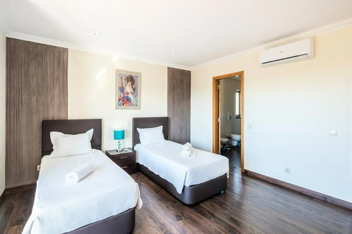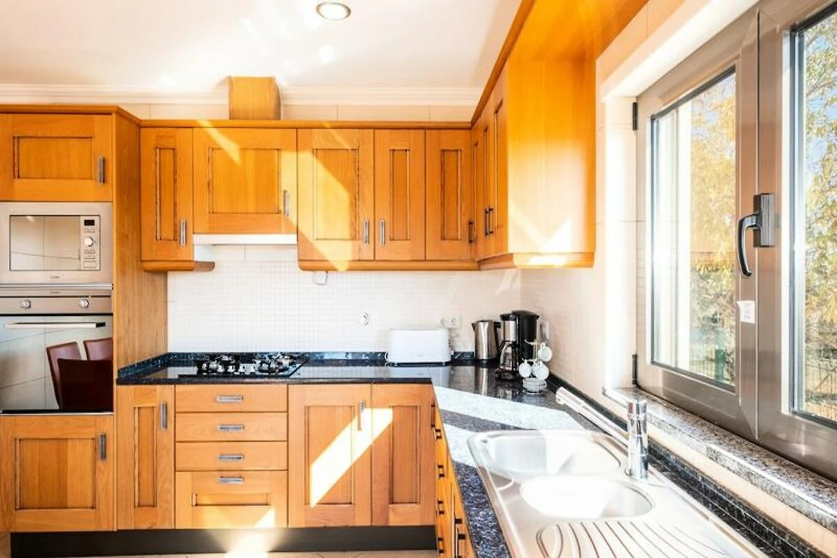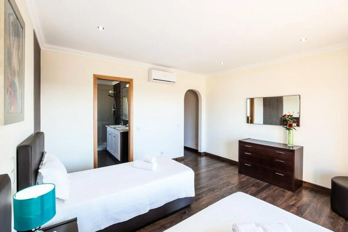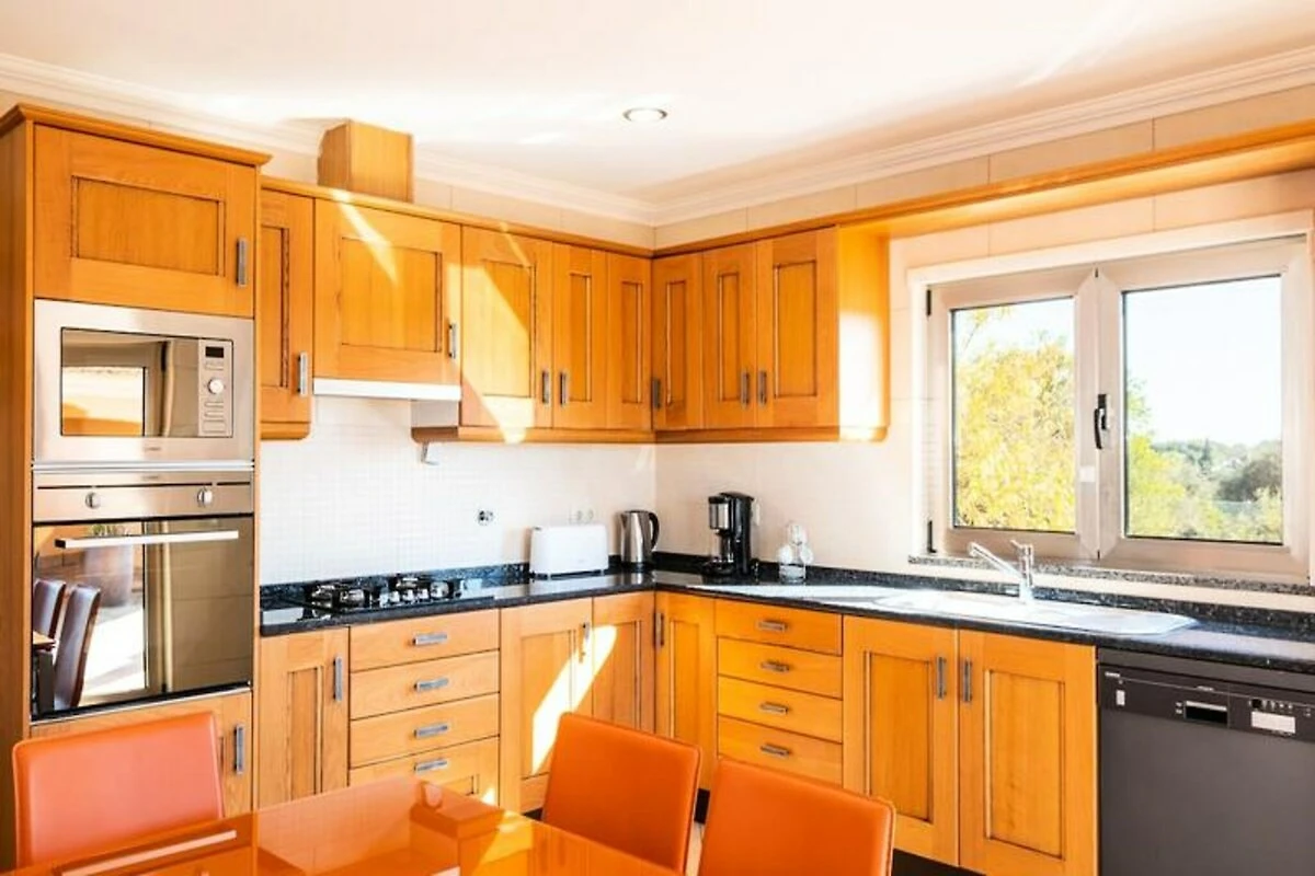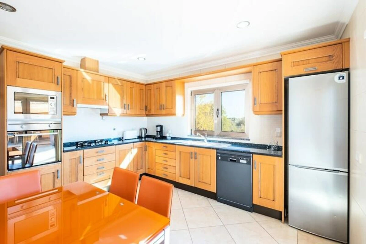 Interni, la villa vanta tre spaziose camere da letto con bagno privato, ognuna arredata con cura per garantire un soggiorno rilassante. La cucina completamente attrezzata si apre su un ampio e arioso soggiorno, creando uno spazio accogliente per pasti e momenti in comune. Uscite all'esterno e raggiungete l'area coperta a bordo piscina, completa di barbecue e tavolo da pranzo, dove potrete gustare cene all'aperto sotto il caldo cielo portoghese. Con riscaldamento in ogni stanza e parcheggio privato per un massimo di tre auto, ogni dettaglio è stato progettato pensando al vostro comfort.