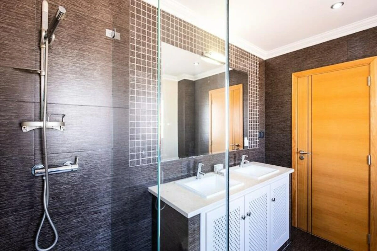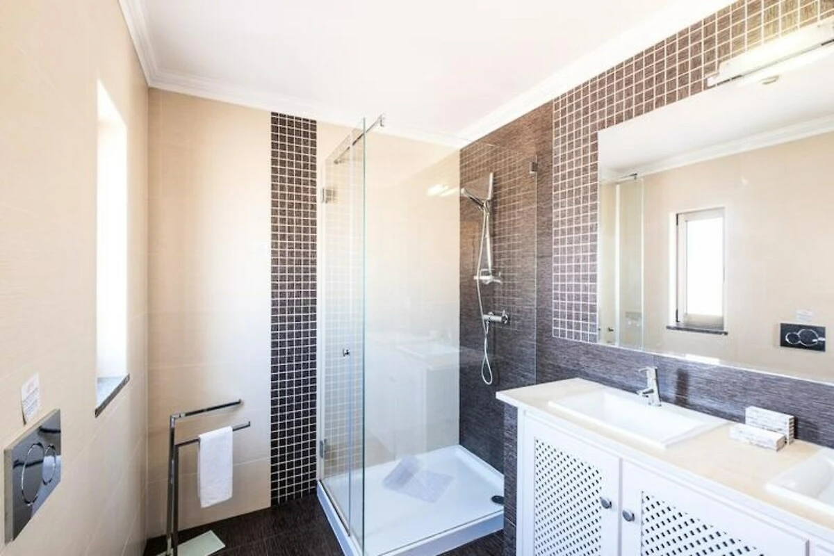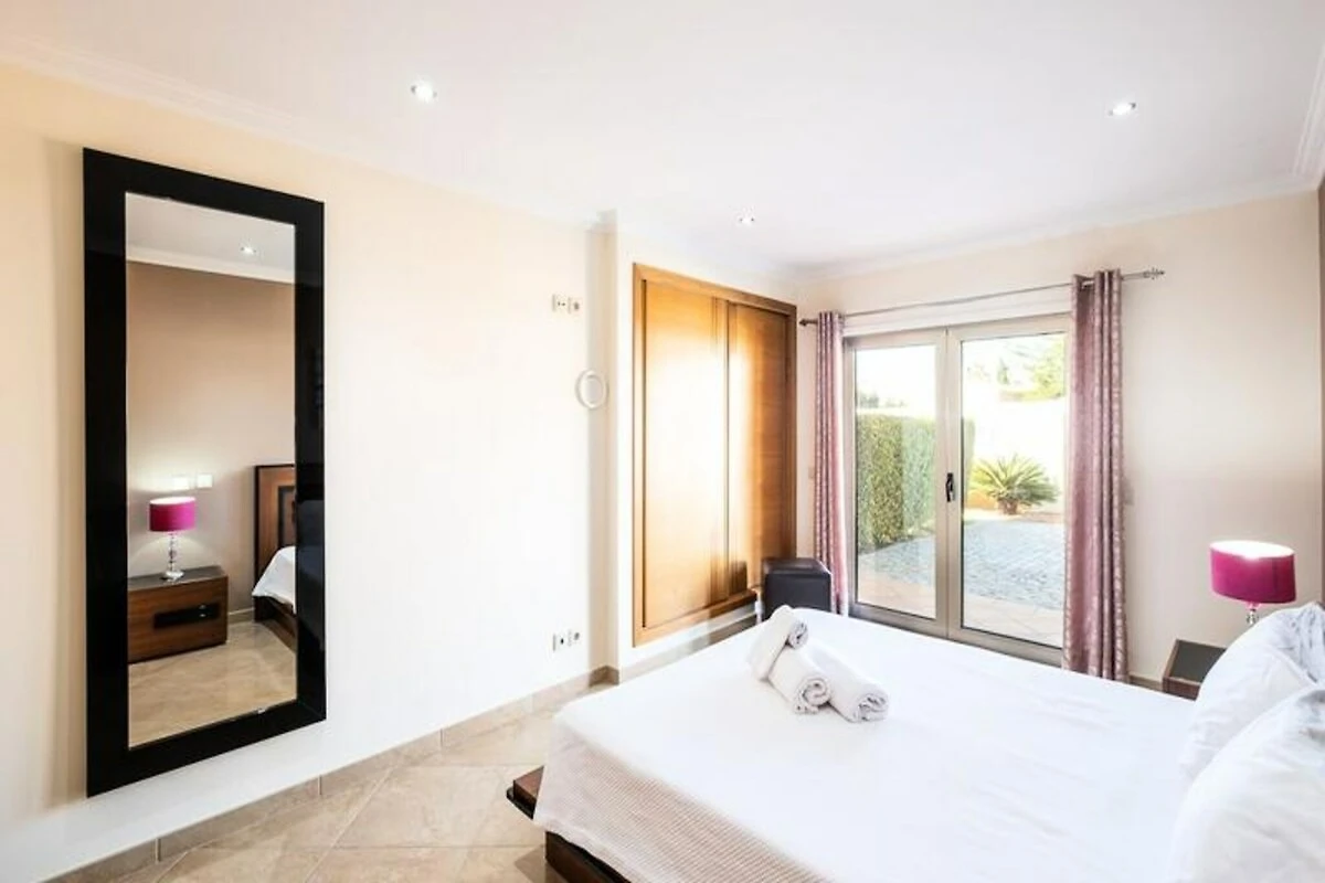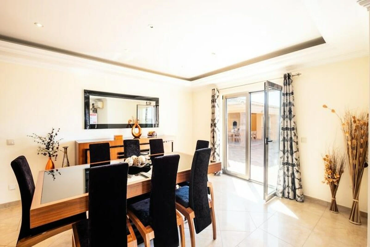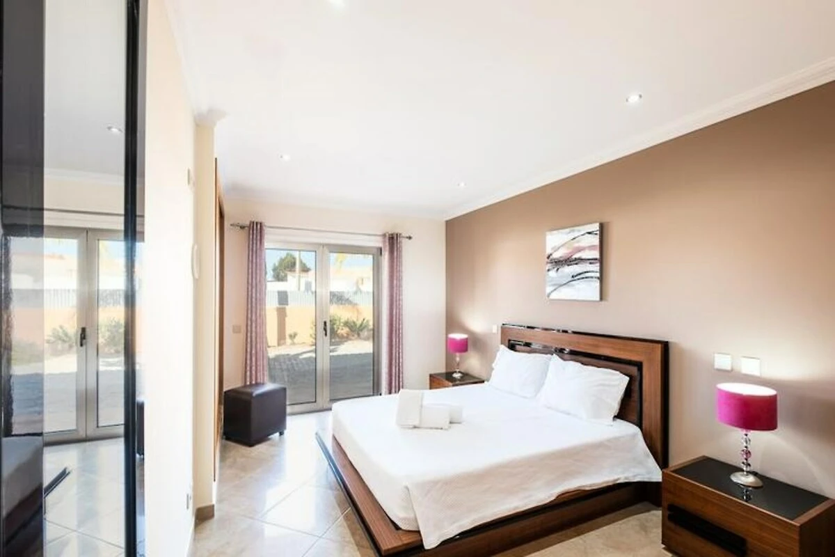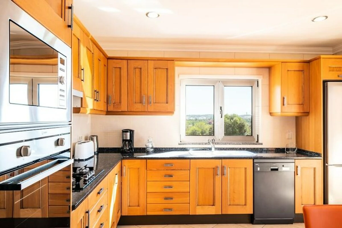 Interni, la villa vanta tre spaziose camere da letto con bagno privato, ognuna arredata con cura per garantire un soggiorno rilassante. La cucina completamente attrezzata si apre su un ampio e arioso soggiorno, creando uno spazio accogliente per pasti e momenti in comune. Uscite all'esterno e raggiungete l'area coperta a bordo piscina, completa di barbecue e tavolo da pranzo, dove potrete gustare cene all'aperto sotto il caldo cielo portoghese. Con riscaldamento in ogni stanza e parcheggio privato per un massimo di tre auto, ogni dettaglio è stato progettato pensando al vostro comfort.