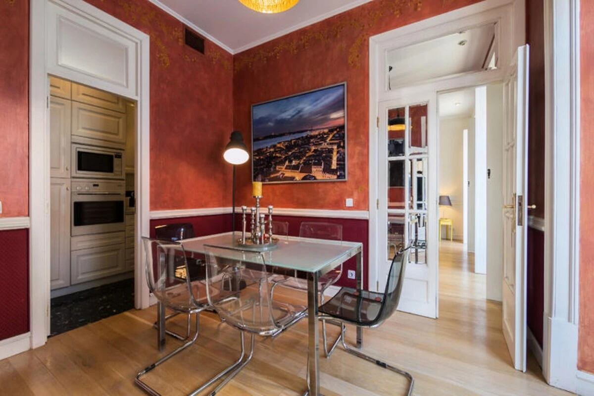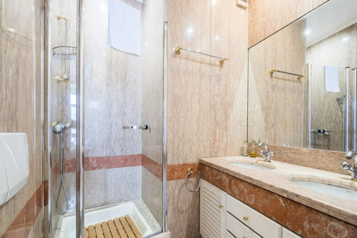 Con una superficie di 102 m², l'appartamento è stato progettato con cura per offrire comfort e stile. La spaziosa camera da letto può ospitare due persone, rendendolo la scelta ideale per coppie o viaggiatori singoli in cerca di una base accogliente ma elegante. La cucina separata è completamente attrezzata con elettrodomestici moderni, tra cui piano cottura in vetroceramica, frigorifero, forno e lavastoviglie, per consentirvi di preparare i pasti con facilità. Ulteriori servizi come Wi-Fi, TV satellitare in diverse lingue, lavatrice e asciugatrice contribuiscono alla comodità del vostro soggiorno. L'arredamento raffinato e la luce naturale che filtra dalle finestre creano un'atmosfera calda e accogliente.