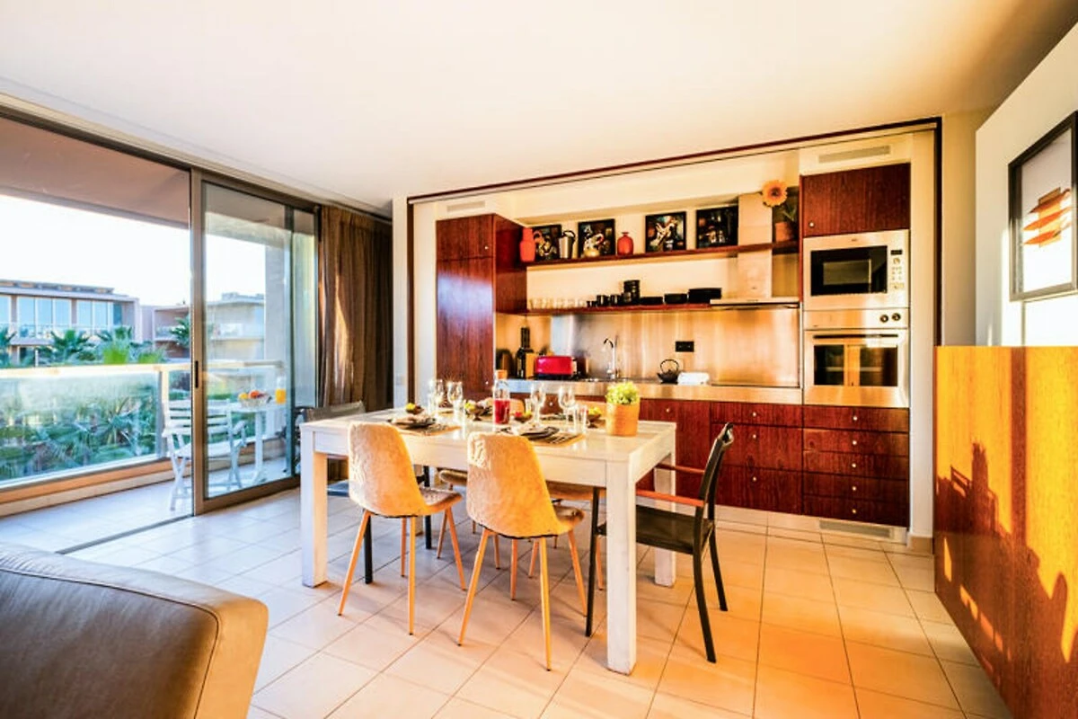 Il design open space collega perfettamente il soggiorno, la zona pranzo e la cucina completamente attrezzata, creando un ambiente spazioso per momenti di condivisione e svago. Un balcone si estende per tutta la lunghezza dell'appartamento, offrendo un collegamento armonioso tra gli spazi interni ed esterni, perfetto per godersi la dolce brezza dell'Algarve. Gli ospiti possono inoltre usufruire della connessione Wi-Fi gratuita e dell'accesso a una piscina in comune, pensata per adulti e bambini, dove vi attendono pomeriggi soleggiati.