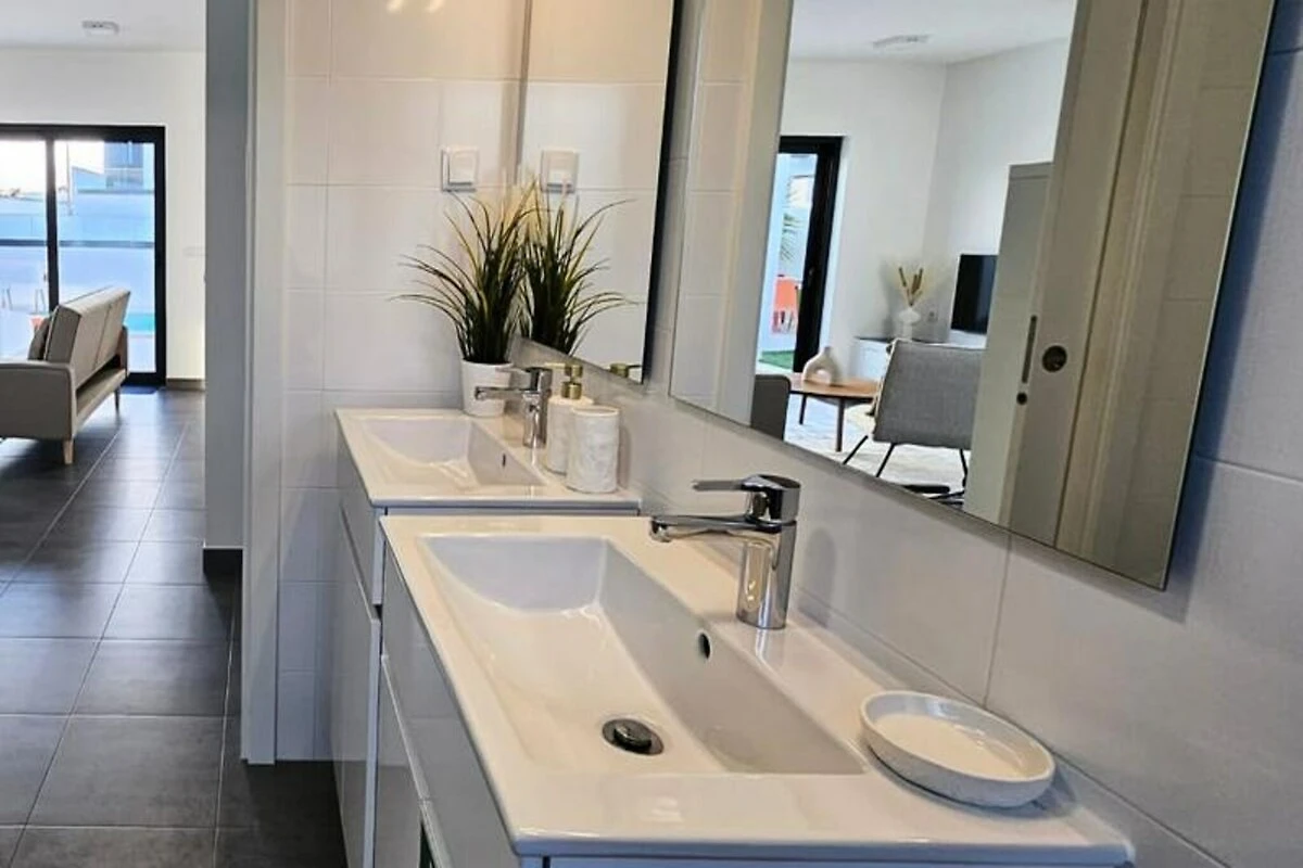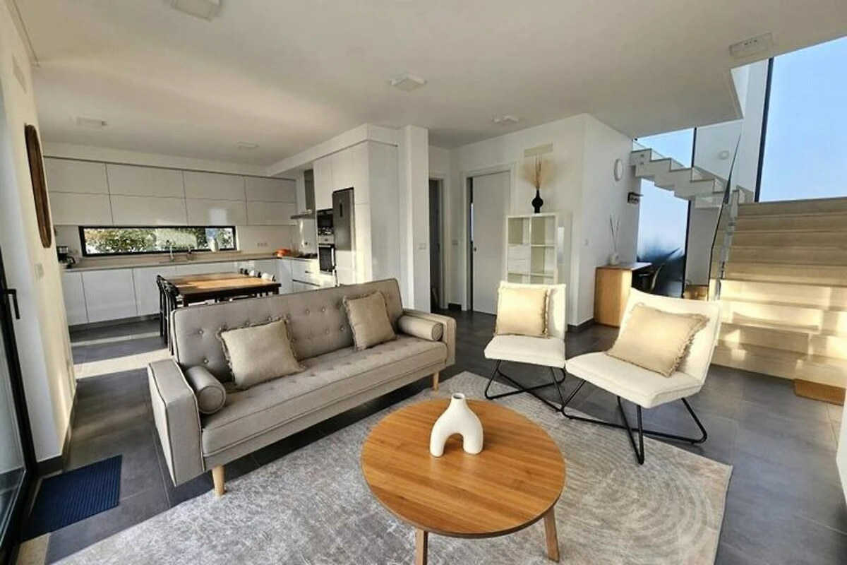 Internamente, la villa vanta tre ampie camere da letto, di cui due con letti queen-size e una con due letti singoli convertibili in un letto king-size. I due bagni moderni e la cucina completamente attrezzata rendono facile sistemarsi e sentirsi a casa. Il luminoso soggiorno, completo di camino a gas, si apre direttamente sulla terrazza e sulla piscina, creando un'armoniosa continuità tra interno ed esterno. Ogni dettaglio è stato progettato pensando al vostro comfort, garantendovi un soggiorno rilassante e piacevole.