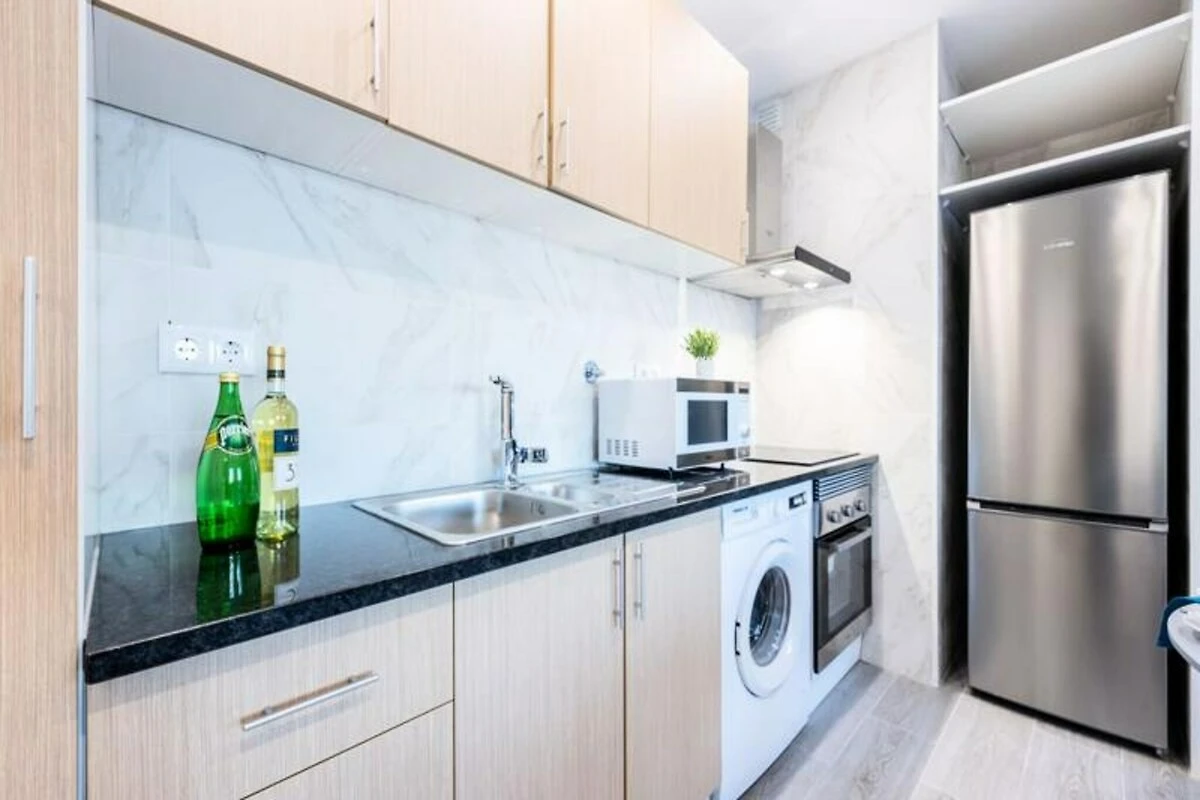Interni, l'appartamento è progettato con cura per soddisfare le esigenze di coppie, viaggiatori singoli o piccole famiglie. L'accogliente camera da letto e il divano letto in soggiorno assicurano notti tranquille, mentre il moderno bagno con cabina doccia aggiunge un tocco di lusso. La cucina a pianta aperta completamente attrezzata vi invita a preparare i vostri piatti preferiti, anche se gli invitanti aromi dei ristoranti vicini potrebbero attirarvi. Le ampie finestre inondano lo spazio di luce naturale e incorniciano la splendida vista sul fiume, creando un'atmosfera calda e accogliente.