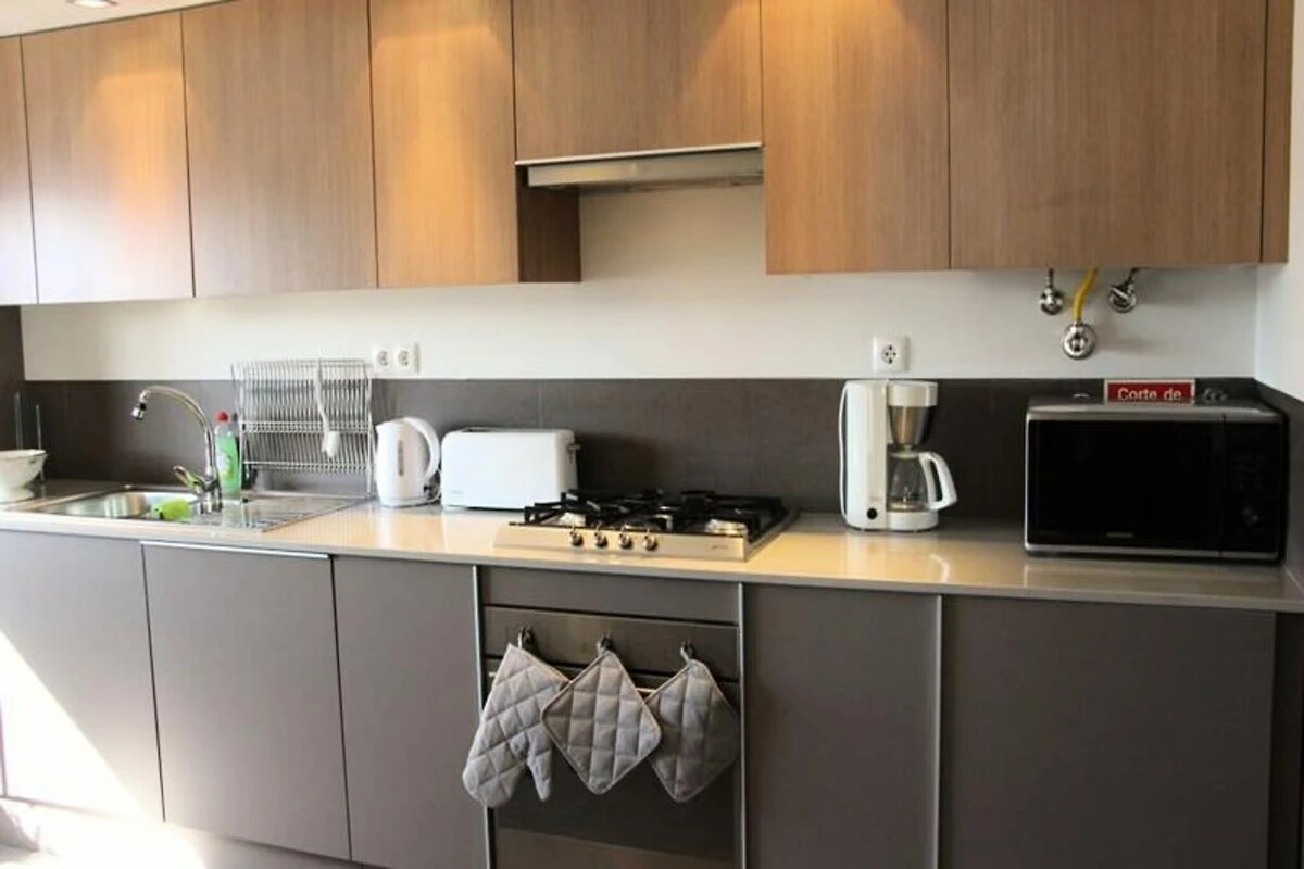 L'appartamento offre un ambiente spazioso con una cucina completamente attrezzata, ideale per preparare piatti locali freschi dopo una giornata di esplorazione. La camera da letto vanta un lussuoso letto matrimoniale (1,60 x 2,00 m) per notti di riposo, mentre gli spazi abitativi sono luminosi e ariosi, con accesso a balconi che invitano all'aria aperta. Gli ospiti possono inoltre usufruire dell'area comune sul tetto, completa di piscina e palestra, perfetta per rilassarsi o mantenersi attivi durante il soggiorno.