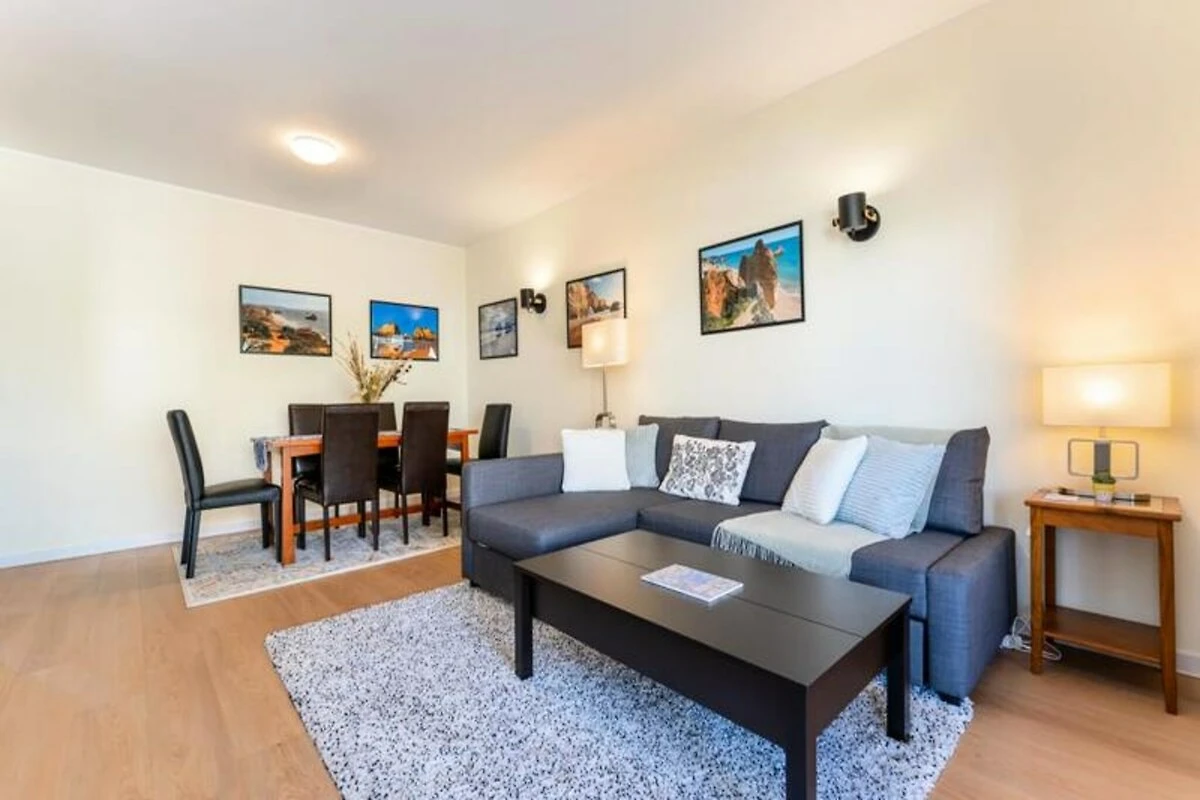 Immaginate di svegliarvi con il dolce suono delle onde e il caldo abbraccio del sole dell'Algarve. Questo lussuoso appartamento a Portimão offre il mix perfetto di comfort, stile e comodità, rendendolo un rifugio ideale per famiglie o gruppi di amici. Situato a pochi passi dalla sabbia dorata di Praia dos Três Castelos, è la vostra porta d'accesso a una vacanza da sogno in riva al mare.