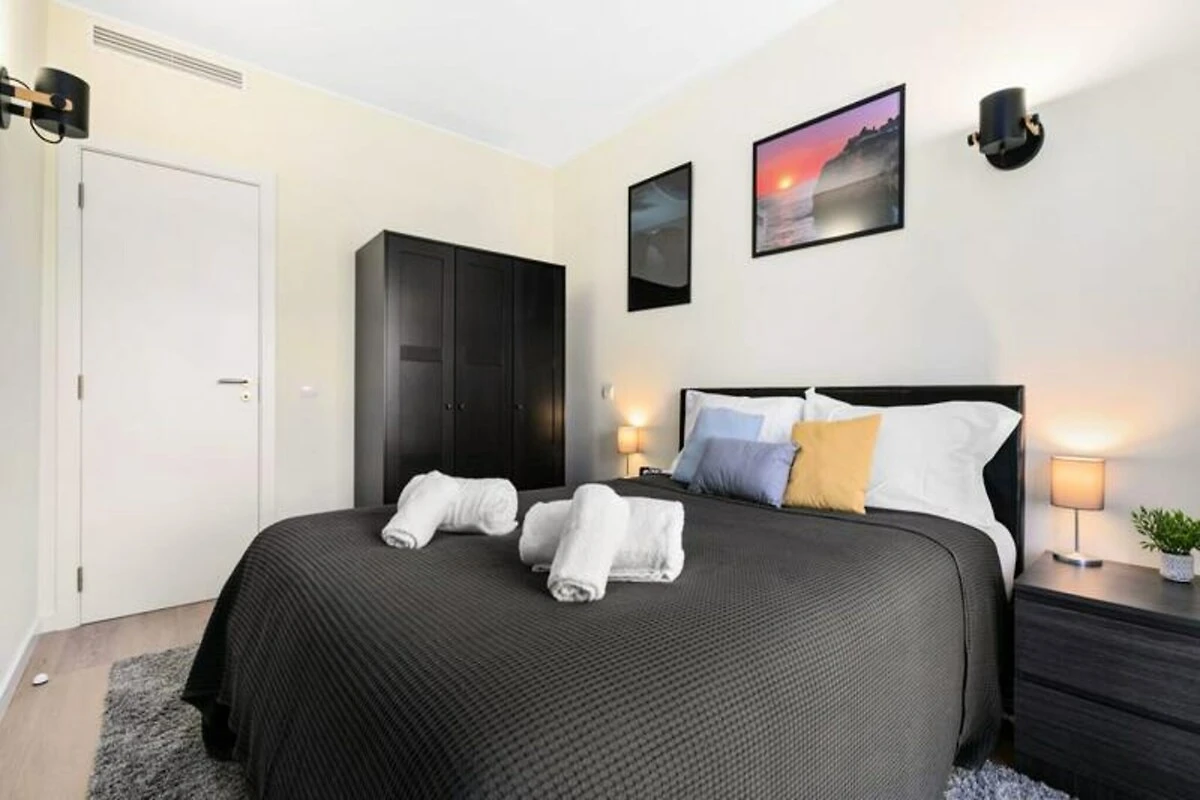 Entrate e scoprite uno spazio progettato pensando al relax. L'appartamento vanta due camere da letto elegantemente arredate, ciascuna dotata di lussuosi letti matrimoniali per un sonno ristoratore. Un comodo divano letto nel soggiorno offre uno spazio aggiuntivo per gli ospiti extra. Con due bagni moderni, uno con vasca e l'altro con doccia, tutti possono godere di privacy e comfort. La cucina completamente attrezzata vi invita a preparare pasti deliziosi, mentre l'ampio soggiorno, dotato di aria condizionata, è perfetto per rilassarsi dopo una giornata di avventure. Uscite sul balcone privato per godervi un pasto o semplicemente per immergervi nell'atmosfera serena.