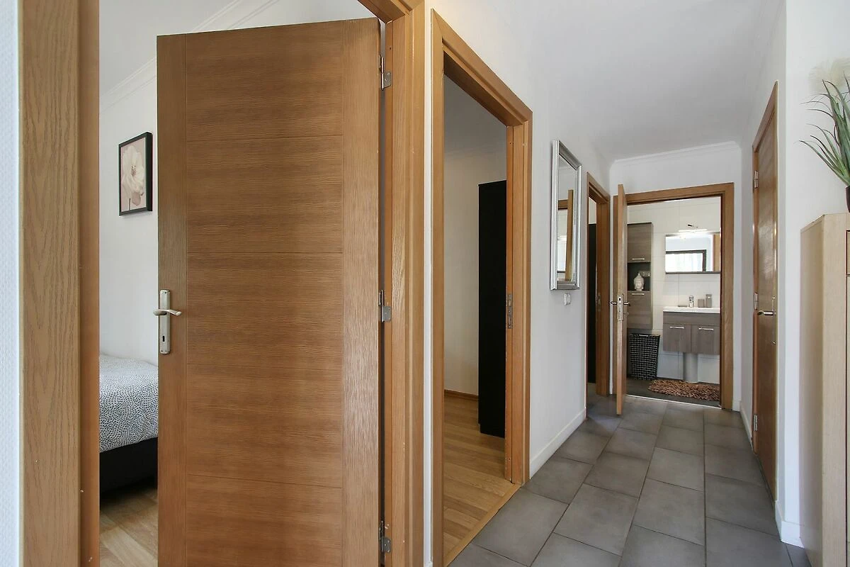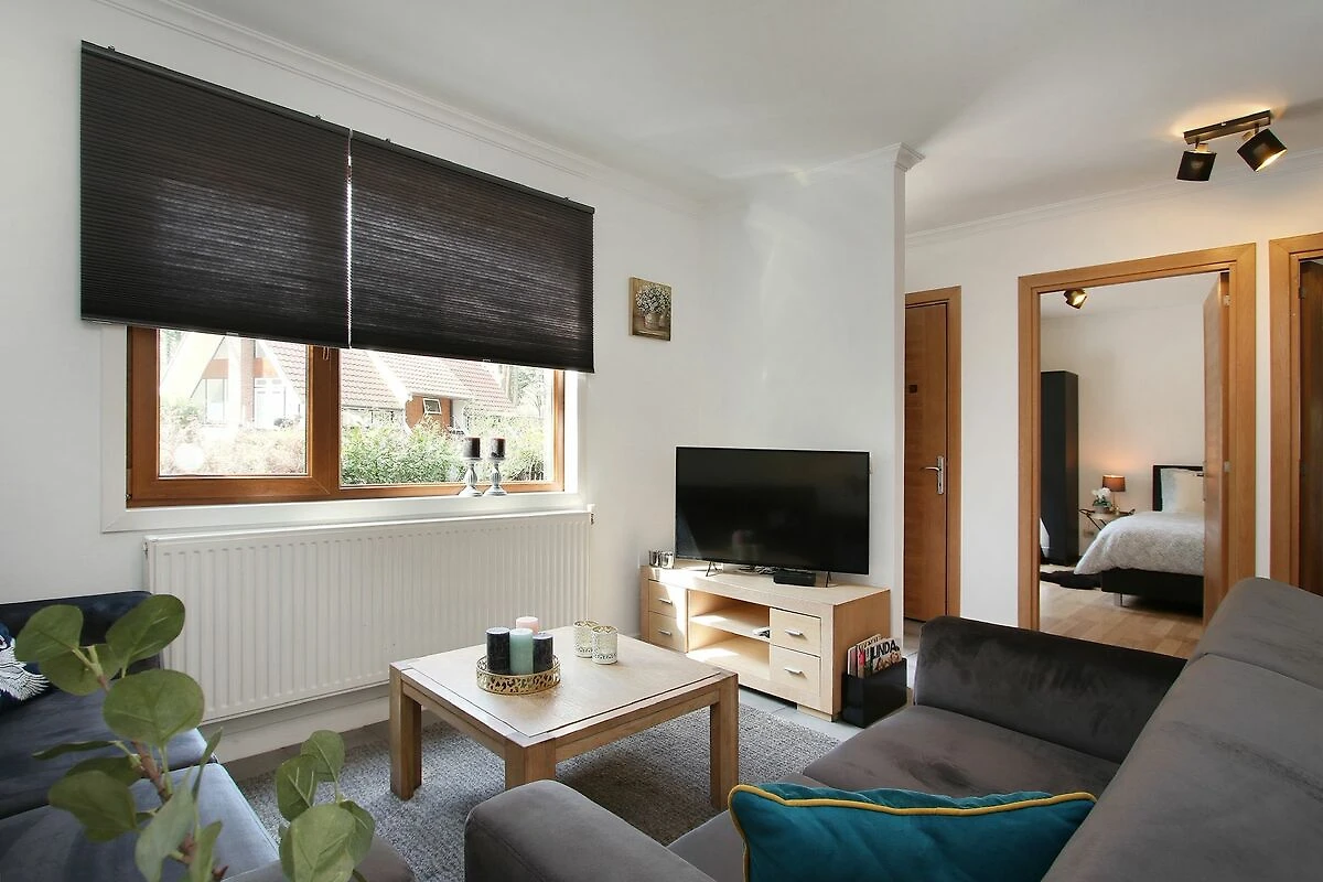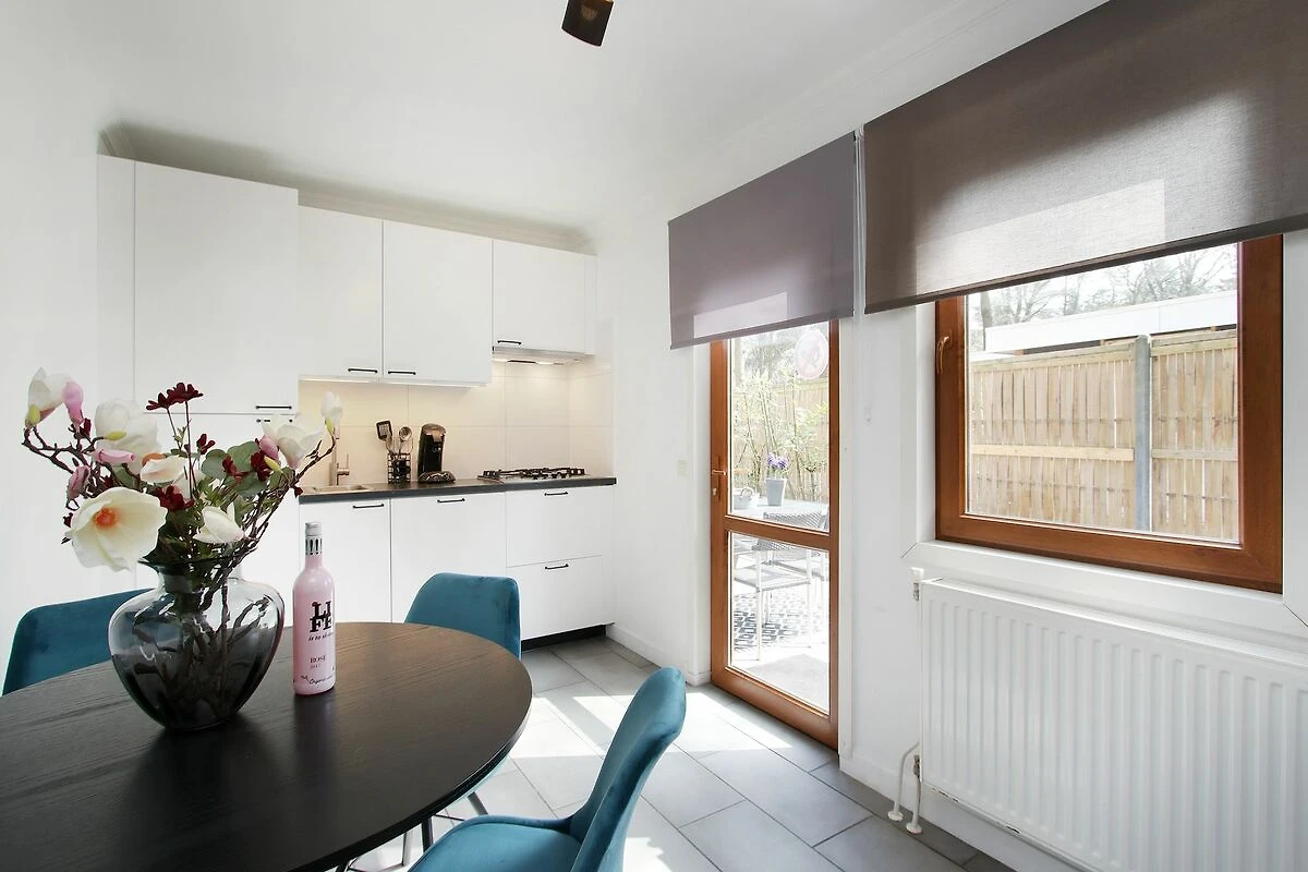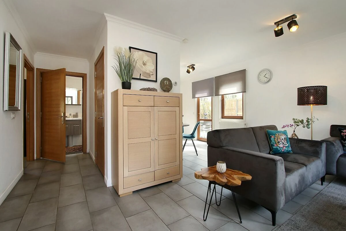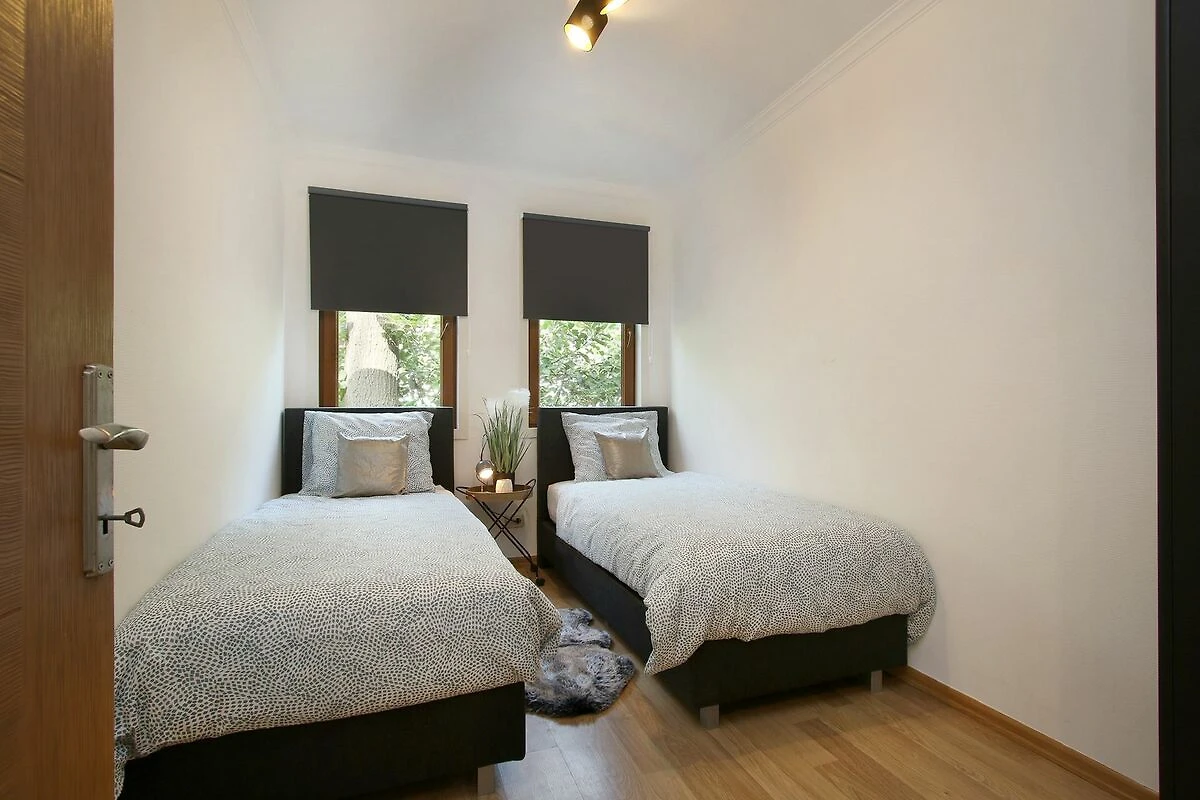 Het huisje heeft drie slaapkamers, elk met een eigen sfeer. Een kamer met een tweepersoonsbed, een lichte kamer met twee eenpersoonsbedden en een babykamer met een ledikant. Het geheel voelt huiselijk en rustig, ideaal voor gezinnen en stellen.