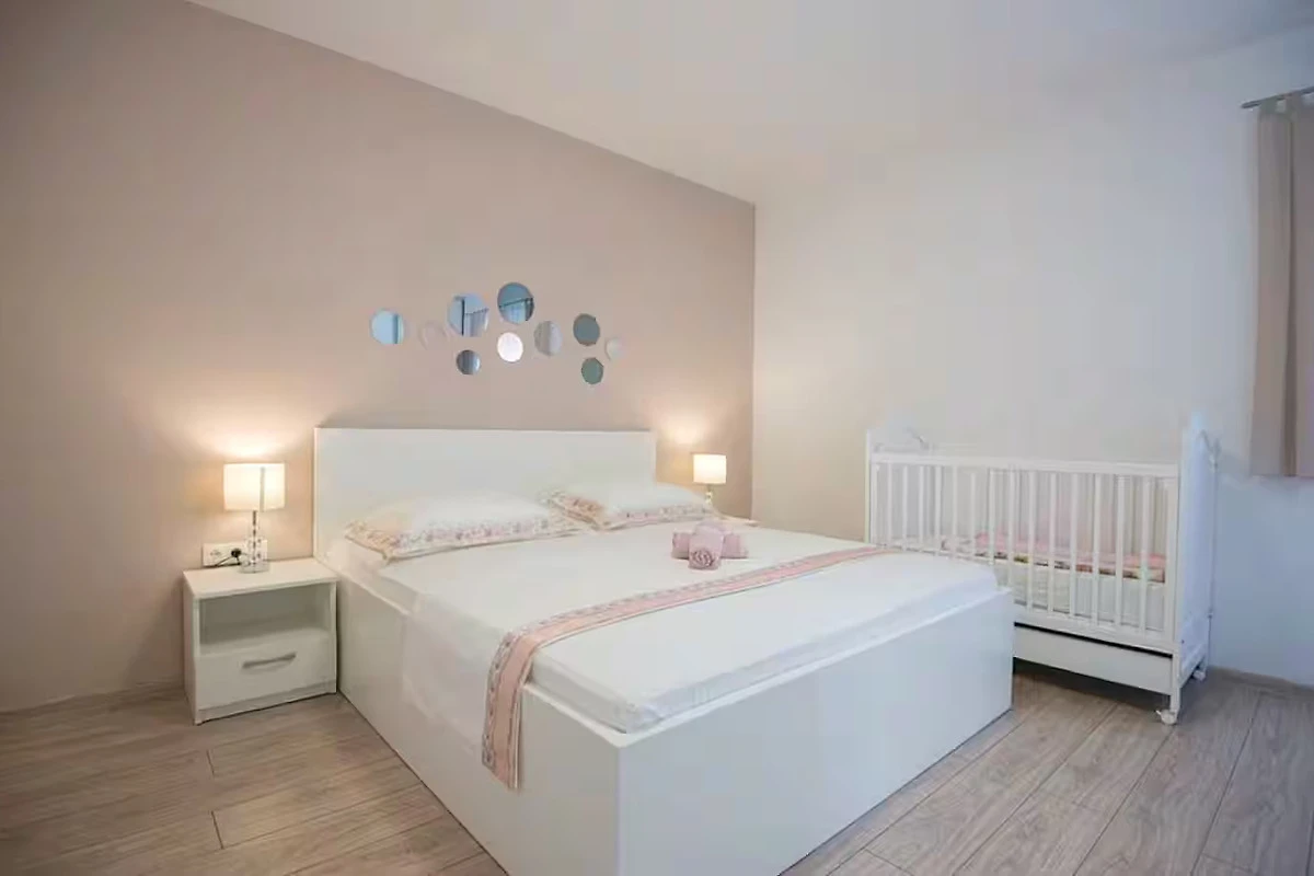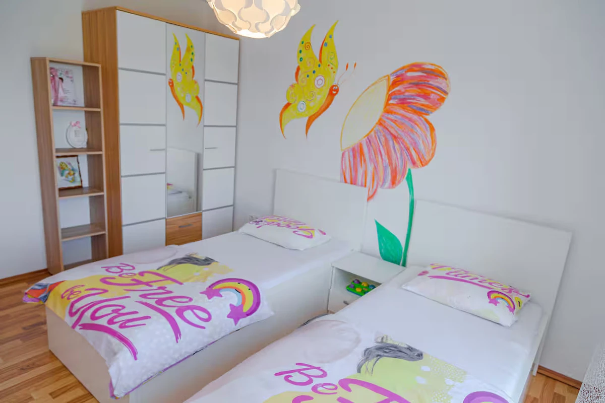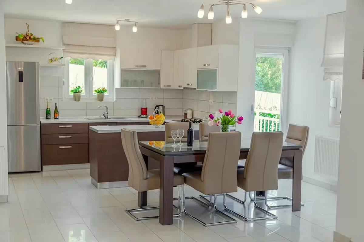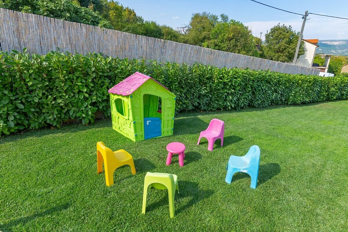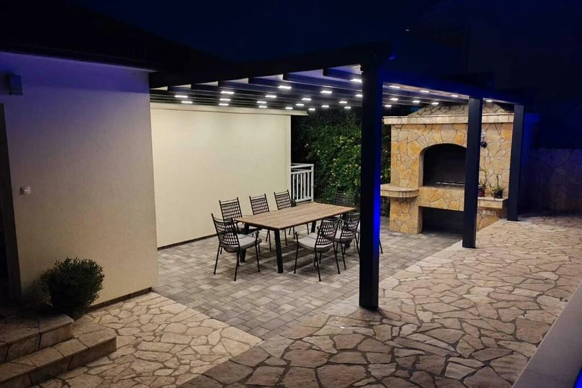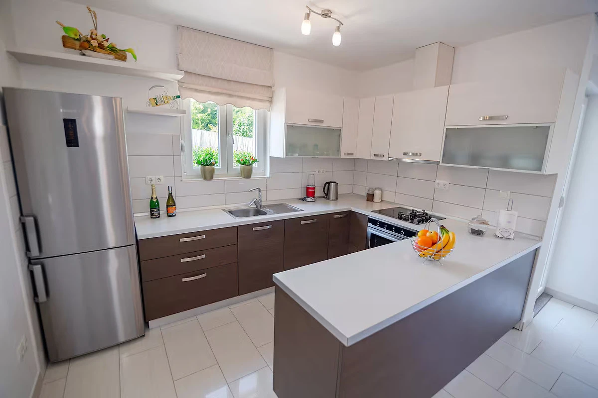 Bella Villa Katarina con piscina privata, terrazza, barbecue e parco giochi per bambini è ideale per famiglie che desiderano trascorrere una vacanza rilassante nella natura e nella tranquillità. Si trova nel pittoresco paese di Zmijavci, vicino alla città di Imotski, in un quartiere molto tranquillo e sicuro. Offre una splendida vista panoramica sulla città di Imotski, sui laghi di Imotski e su tutta la piana di Imotski. Questa casa vacanze indipendente, che può ospitare comodamente fino a 10 persone, offre un’oasi di tranquillità in una pittoresca valle di Imotski. La casa si estende sul piano terra e il primo piano. Dispone di 5 camere da letto, 3 bagni, un soggiorno con Smart-TV (Netflix possibile), una cucina e un ulteriore WC. L’intera casa è completamente climatizzata e dispone in totale di 6 climatizzatori. L’area esterna di questa struttura è un vero punto di forza e offre agli ospiti un paradiso privato e appartato nel giardino. Qui si trova la piscina (32 m²) con lettini per rinfrescarsi nelle calde giornate estive, oltre a una bella zona pranzo coperta accanto al camino-barbecue. I più giovani possono divertirsi nel campo sportivo erboso con due porte da calcio o giocando a ping-pong. La terrazza e il balcone offrono luoghi perfetti per godersi l'ambiente idilliaco o cenare all'aperto.