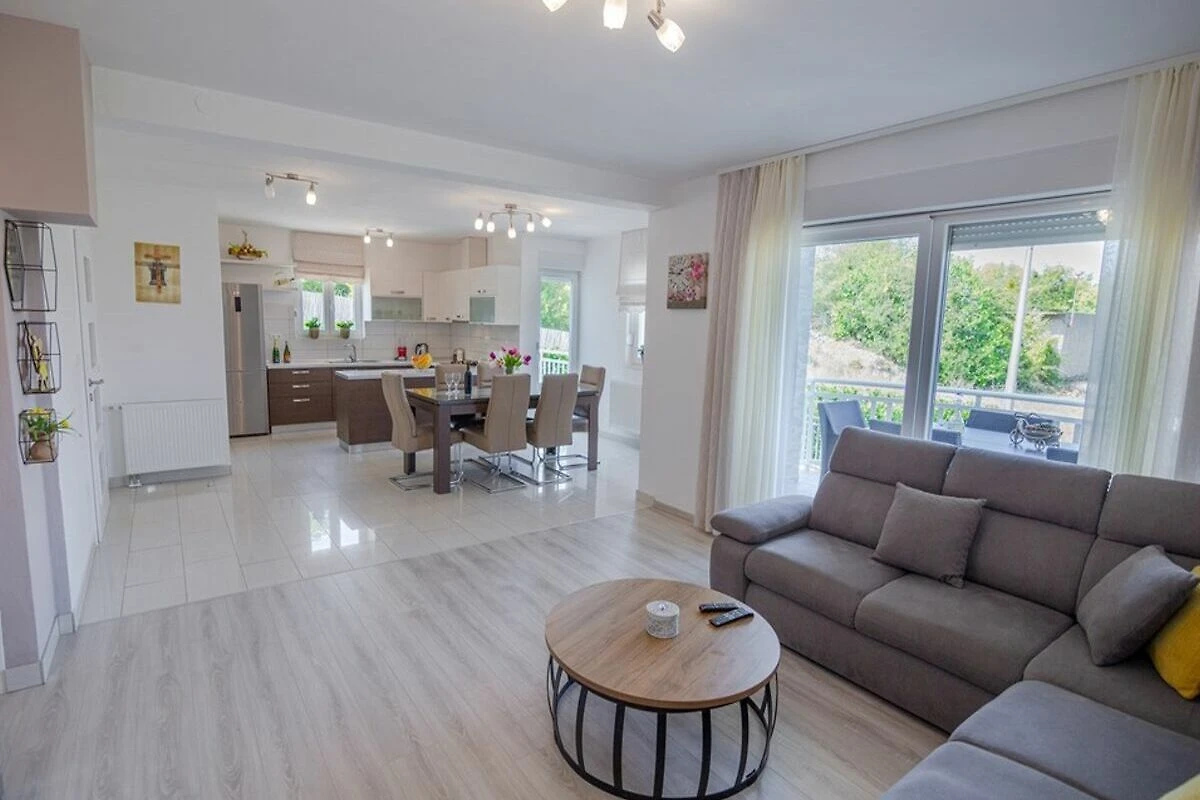 Un negozio di alimentari si trova a soli 300 m di distanza, il che rende particolarmente facile fare acquisti per le necessità quotidiane. A soli 1 km di distanza si trovano numerosi ristoranti. A Imotski, a soli 5 minuti di auto, ci sono supermercati più grandi, panetterie, una stazione di servizio, banche, una farmacia e un ospedale. I dintorni offrono laghi impressionanti, ideali per nuotare, e un bellissimo parco naturale lungo il fiume Vrljika, che offre ottime possibilità per andare in canoa o per tour in quad o e-bike. Anche un ranch con offerte di equitazione a Medvidovića Draga si trova nelle vicinanze. Le bellissime spiagge di ciottoli della Riviera di Makarska (Brela, Baška Voda) sono raggiungibili in 30 minuti. La regione di Imotski è conosciuta per la sua natura incontaminata e la sua tradizione vinicola.