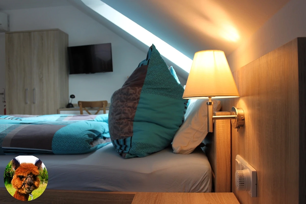 Iniziate la giornata sul balcone con vista sul verde oppure utilizzate il giardino e il barbecue per momenti conviviali all’aperto. Per la vostra mobilità sono disponibili un parcheggio e una wallbox per auto elettriche. Biciclette e una barca vi offrono la possibilità di esplorare attivamente i dintorni suggestivi. L'appartamento per le vacanze è adatto agli allergici, non fumatori e prenotabile anche per soggiorni più lunghi. Biancheria da letto, ferro da stiro e asciugacapelli sono naturalmente disponibili. L'arredamento curato con pavimenti in legno e un'accogliente zona salotto crea un'atmosfera piacevole. Lasciatevi entusiasmare dagli amichevoli alpaca presenti nella proprietà e vivete momenti indimenticabili di vacanza immersi nella natura.