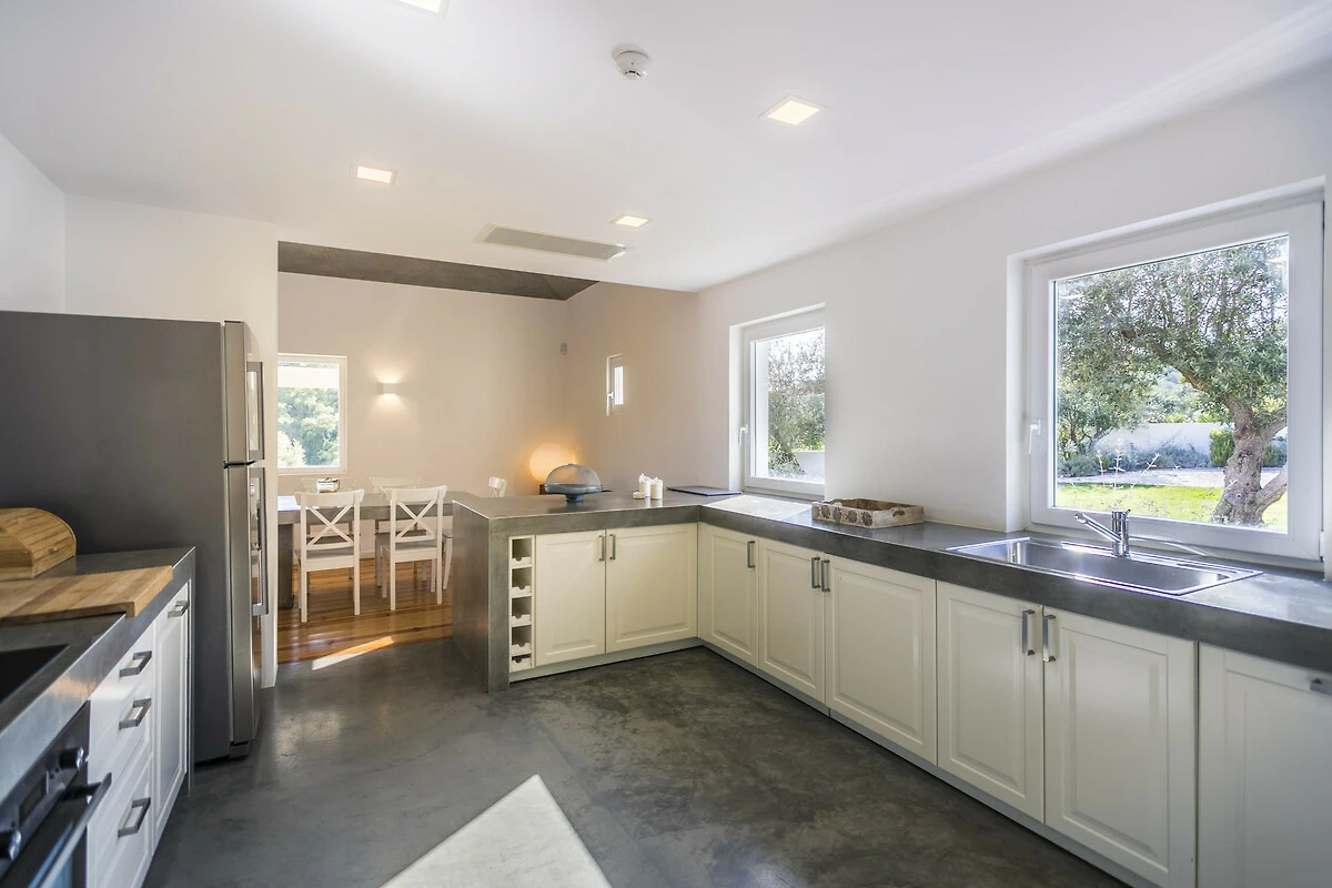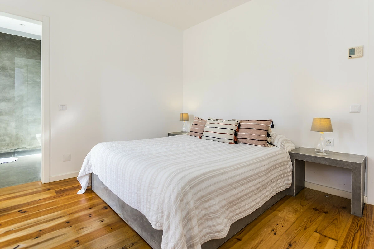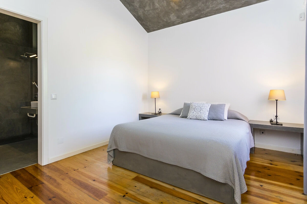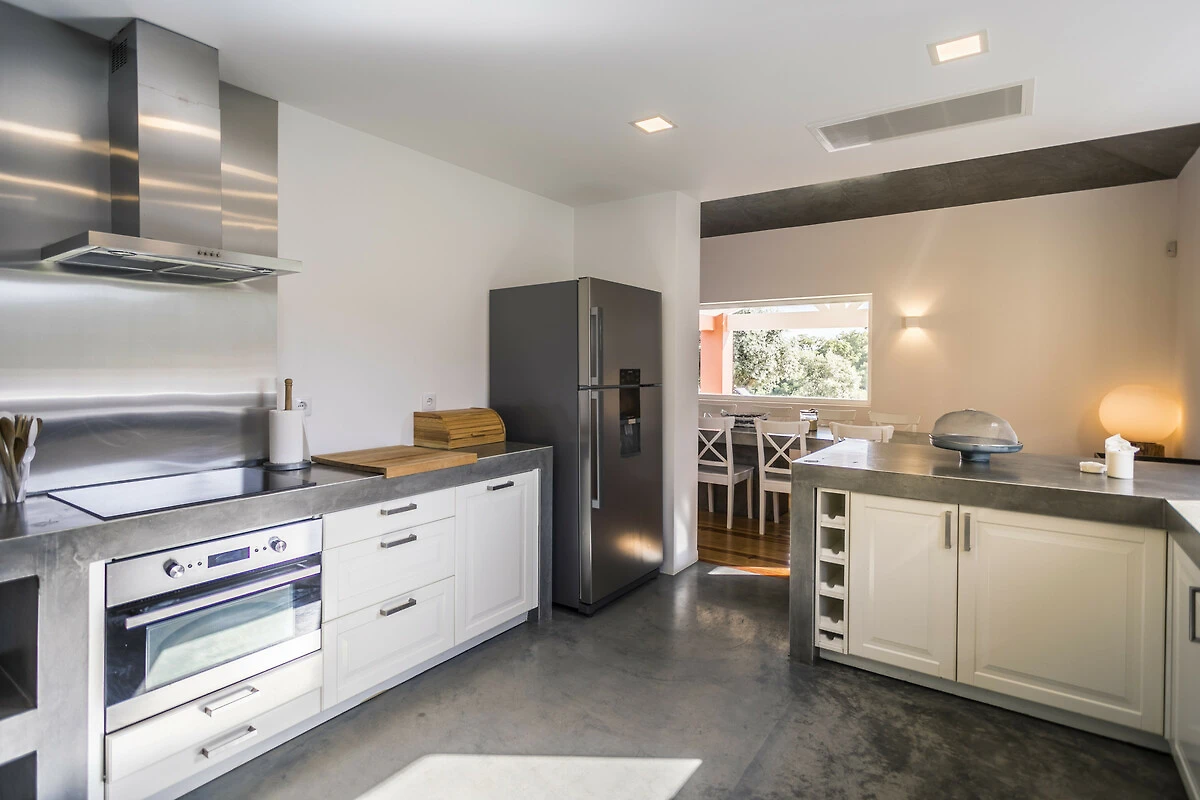 Lined on three sides by red tilling, with sunbeds positioned around it for the whole party, and the fourth side boasting such glorious views, the pool really is the heart of the villa. Immediately next to the pool on one side is a covered chill area, with outdoor day beds and a large window into the dining area. Overall, this is a modern, spacious and comfortable villa nestled in the heart of the Grandola countryside, but only a stone's throw from the city.