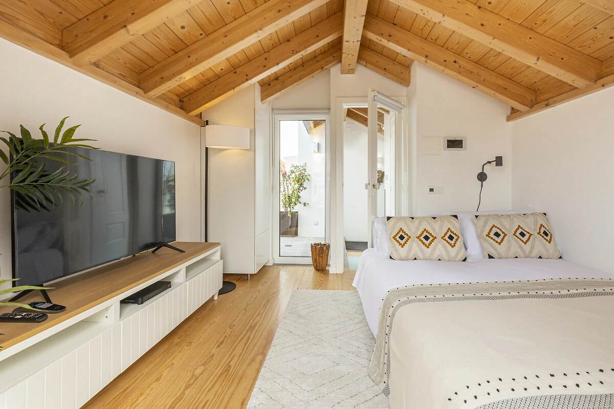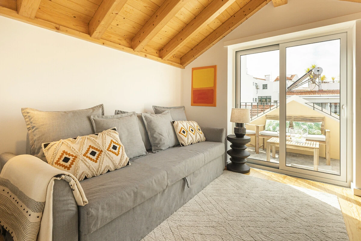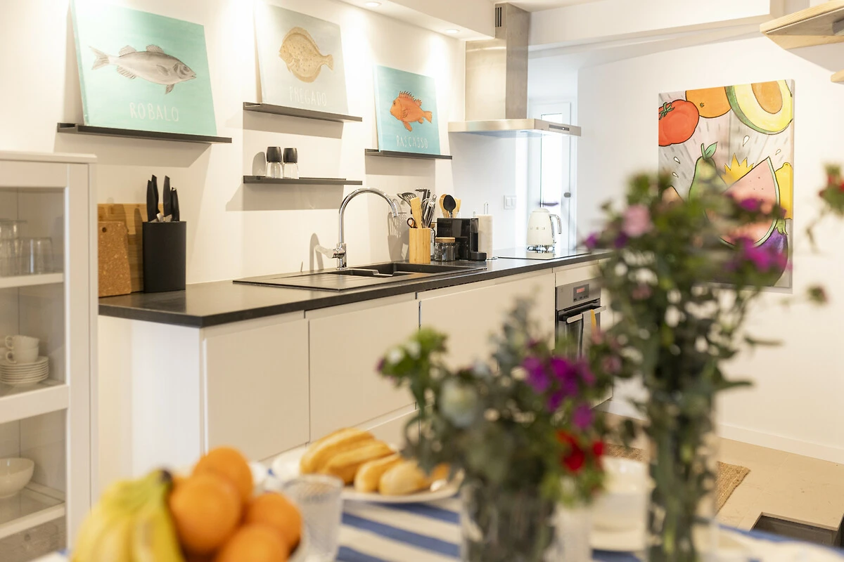I dettagli divertenti e bizzarri di questa casa sono sicuramente in grado di deliziare e aggiungere carattere al tuo soggiorno. Opere d'arte colorate adornano le pareti e gli arredi e i complementi d'arredo unici riflettono la vivace cultura del Portogallo. Al piano terra troverai un soggiorno/cucina open-plan con un'atmosfera contemporanea ma accogliente, pavimenti piastrellati e travi in legno a vista. Salendo al primo piano ci sono 2 camere matrimoniali grandi e piene di luce, splendidamente decorate con pavimenti in legno e armadi a muro, e ci sono 2 bagni moderni. Al piano superiore, c'è un ampio soggiorno soleggiato che può essere convertito in una terza camera matrimoniale se necessario. Le porte conducono direttamente a una piccola terrazza privata, con splendide viste sui tetti di Cascais fino alla baia sottostante, il punto perfetto per un aperitivo o due! C'è anche un piccolo bagno in questo piano.