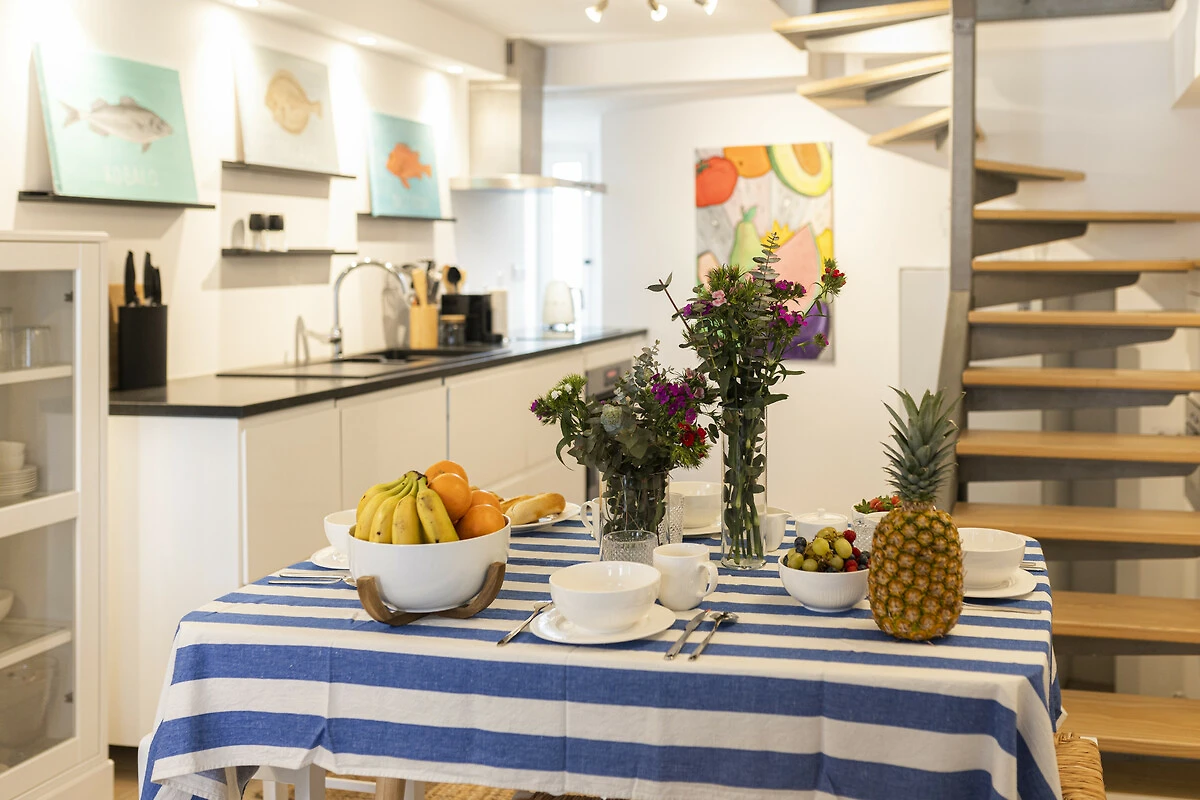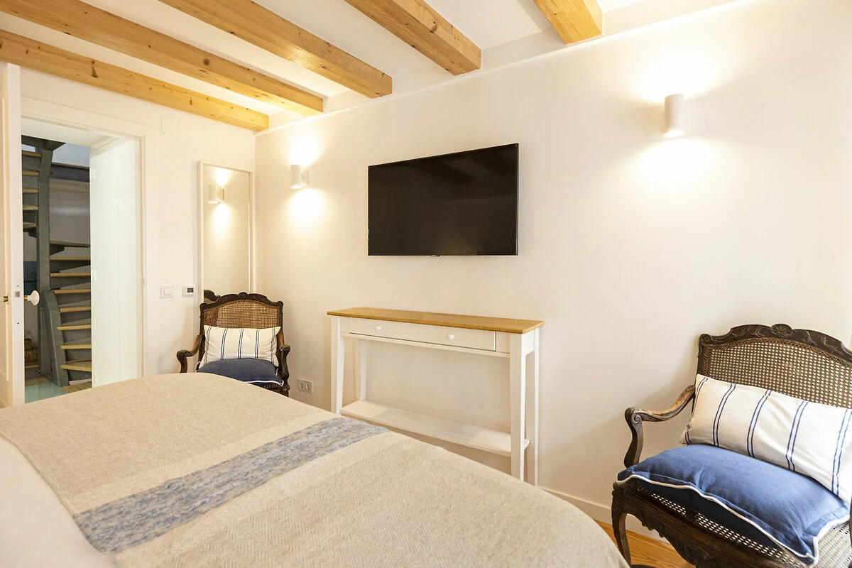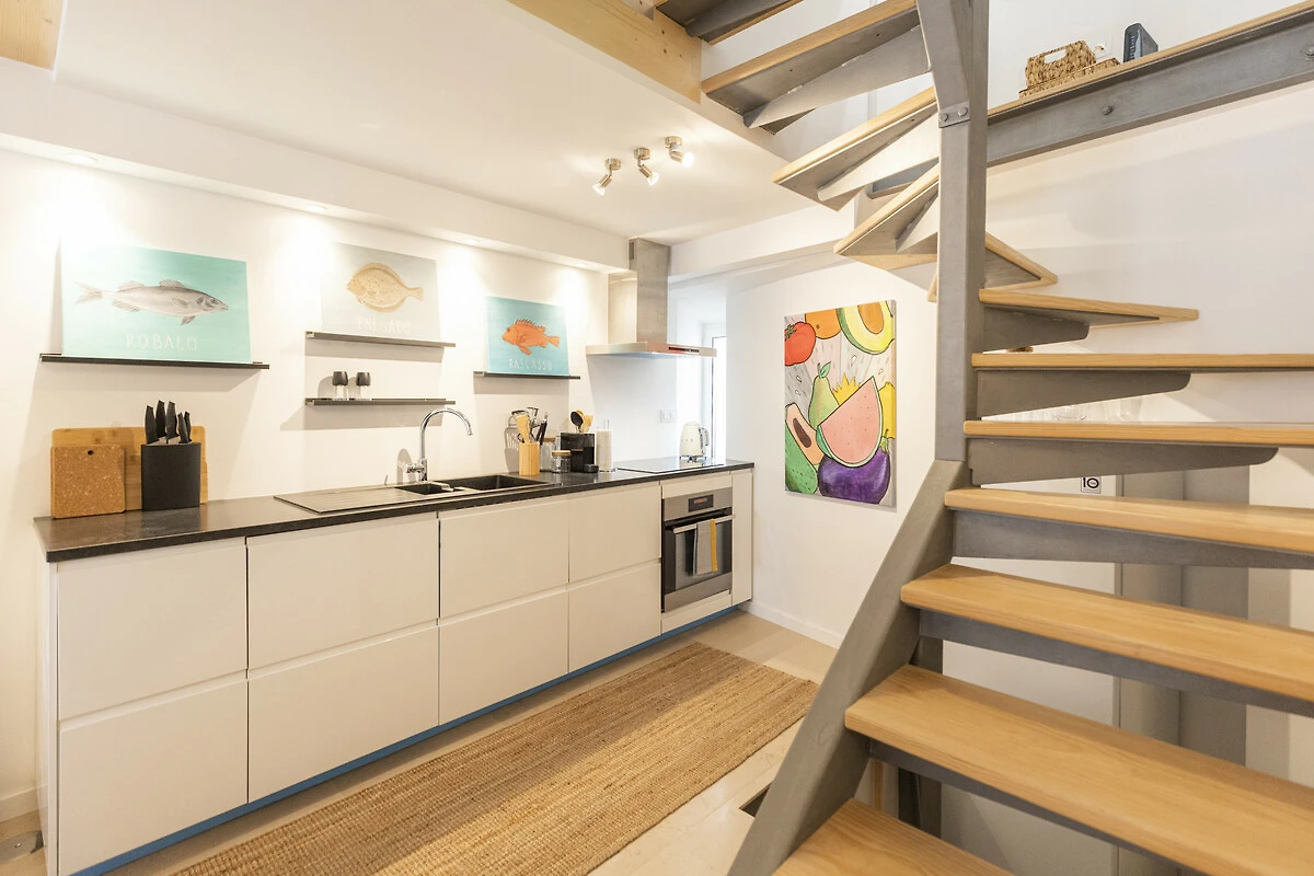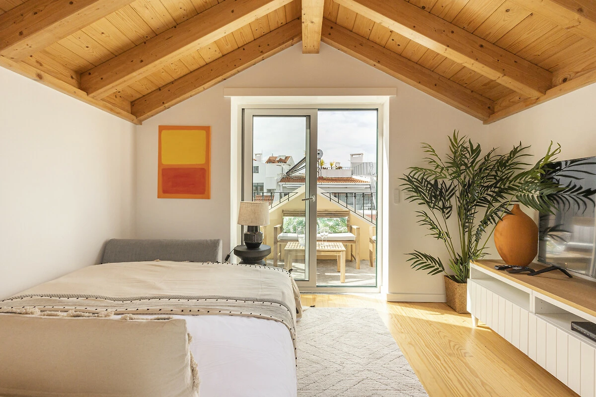 I dettagli divertenti e bizzarri di questa casa sono sicuramente in grado di deliziare e aggiungere carattere al tuo soggiorno. Opere d'arte colorate adornano le pareti e gli arredi e i complementi d'arredo unici riflettono la vivace cultura del Portogallo. Al piano terra troverai un soggiorno/cucina open-plan con un'atmosfera contemporanea ma accogliente, pavimenti piastrellati e travi in legno a vista. Salendo al primo piano ci sono 2 camere matrimoniali grandi e piene di luce, splendidamente decorate con pavimenti in legno e armadi a muro, e ci sono 2 bagni moderni. Al piano superiore, c'è un ampio soggiorno soleggiato che può essere convertito in una terza camera matrimoniale se necessario. Le porte conducono direttamente a una piccola terrazza privata, con splendide viste sui tetti di Cascais fino alla baia sottostante, il punto perfetto per un aperitivo o due! C'è anche un piccolo bagno in questo piano.