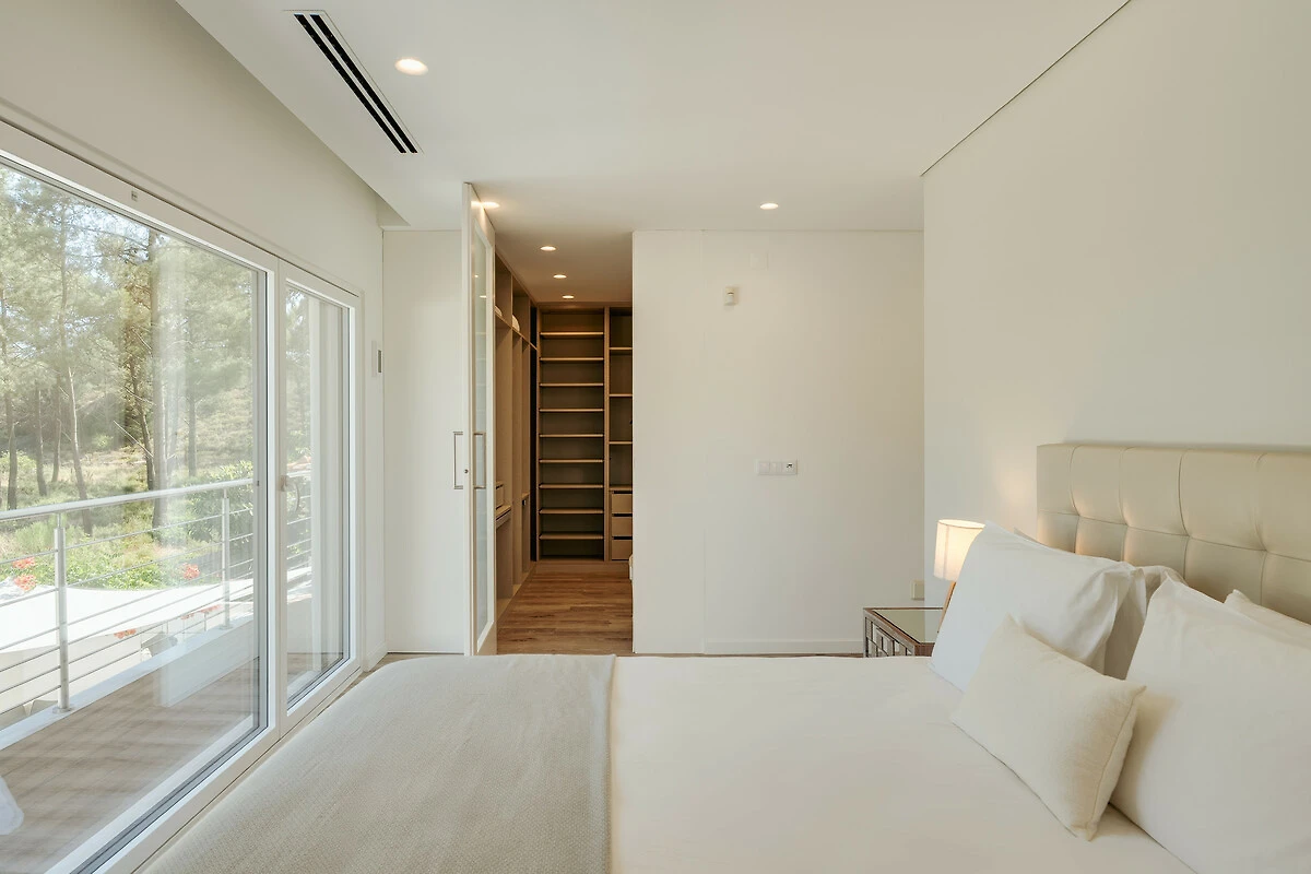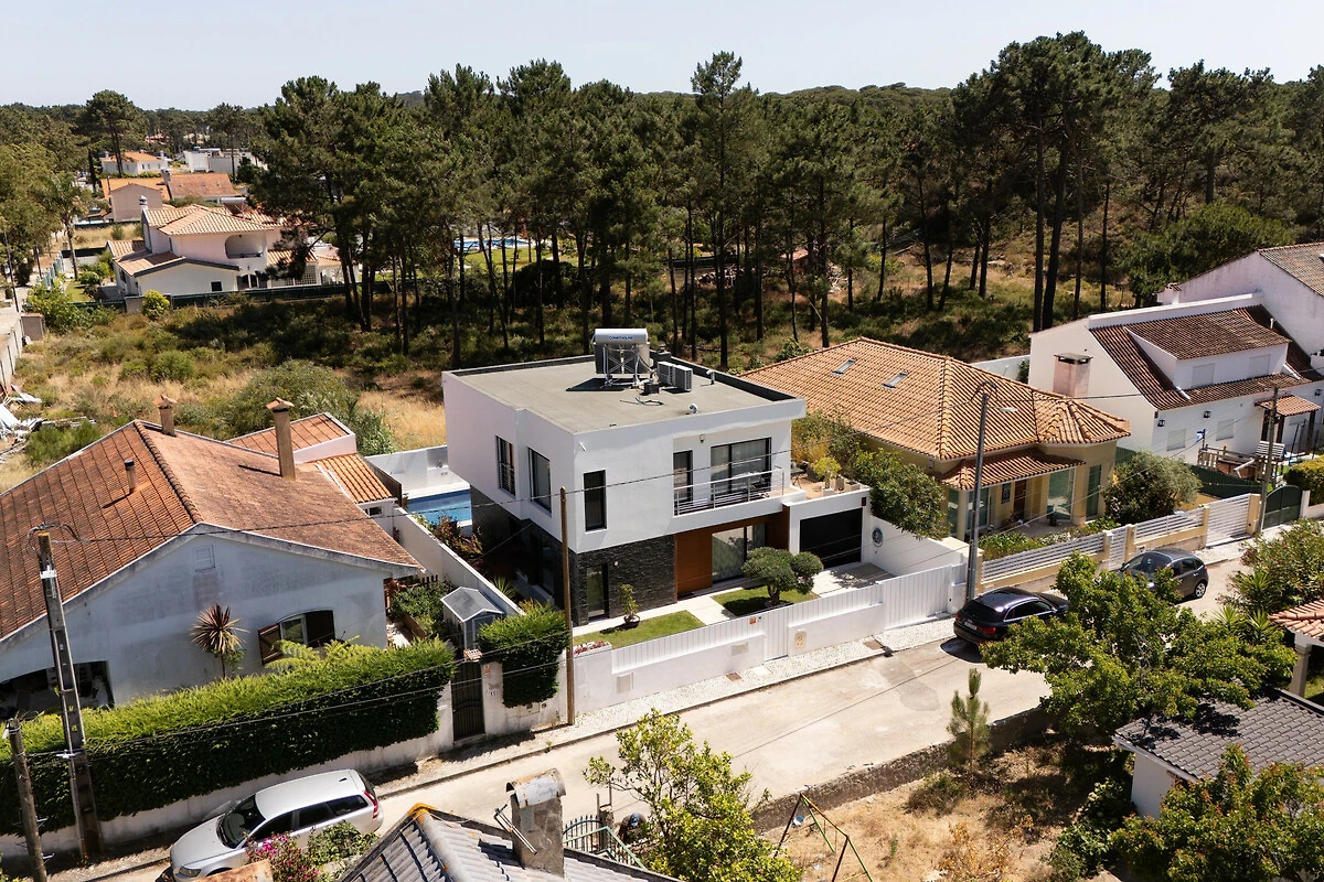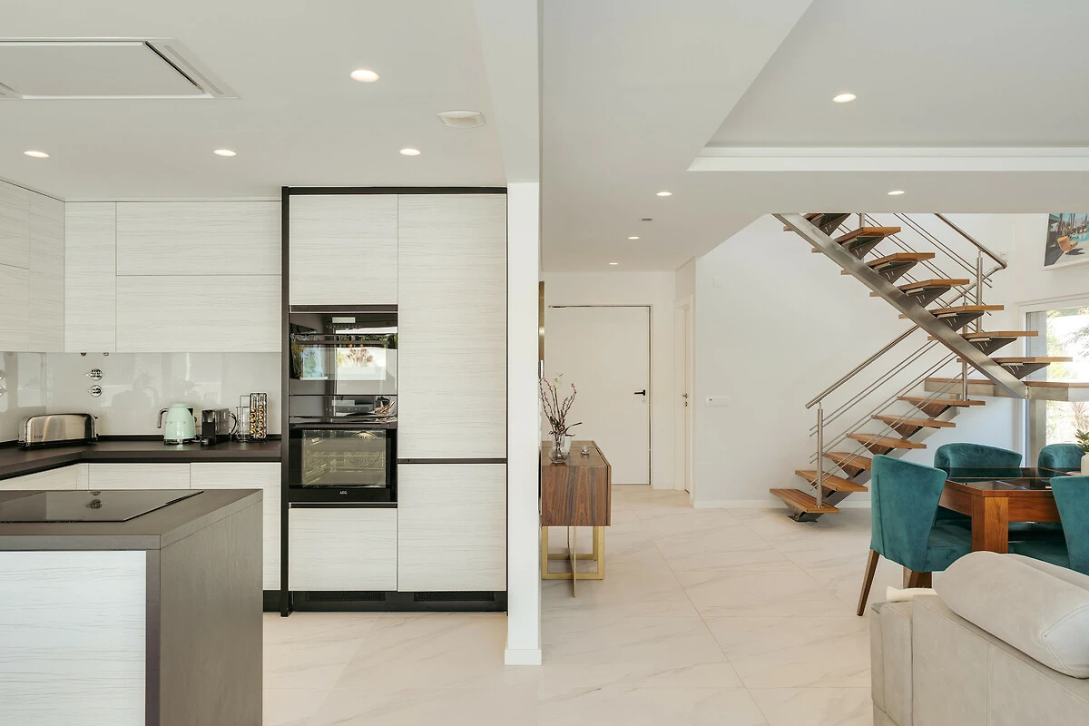 Nascosta in un'area tranquilla vicino a una bellissima pineta, questa elegante villa su due piani offre il perfetto connubio di comfort, privacy e vita moderna, a soli cinque minuti in auto o a 15 minuti a piedi dalla spiaggia.