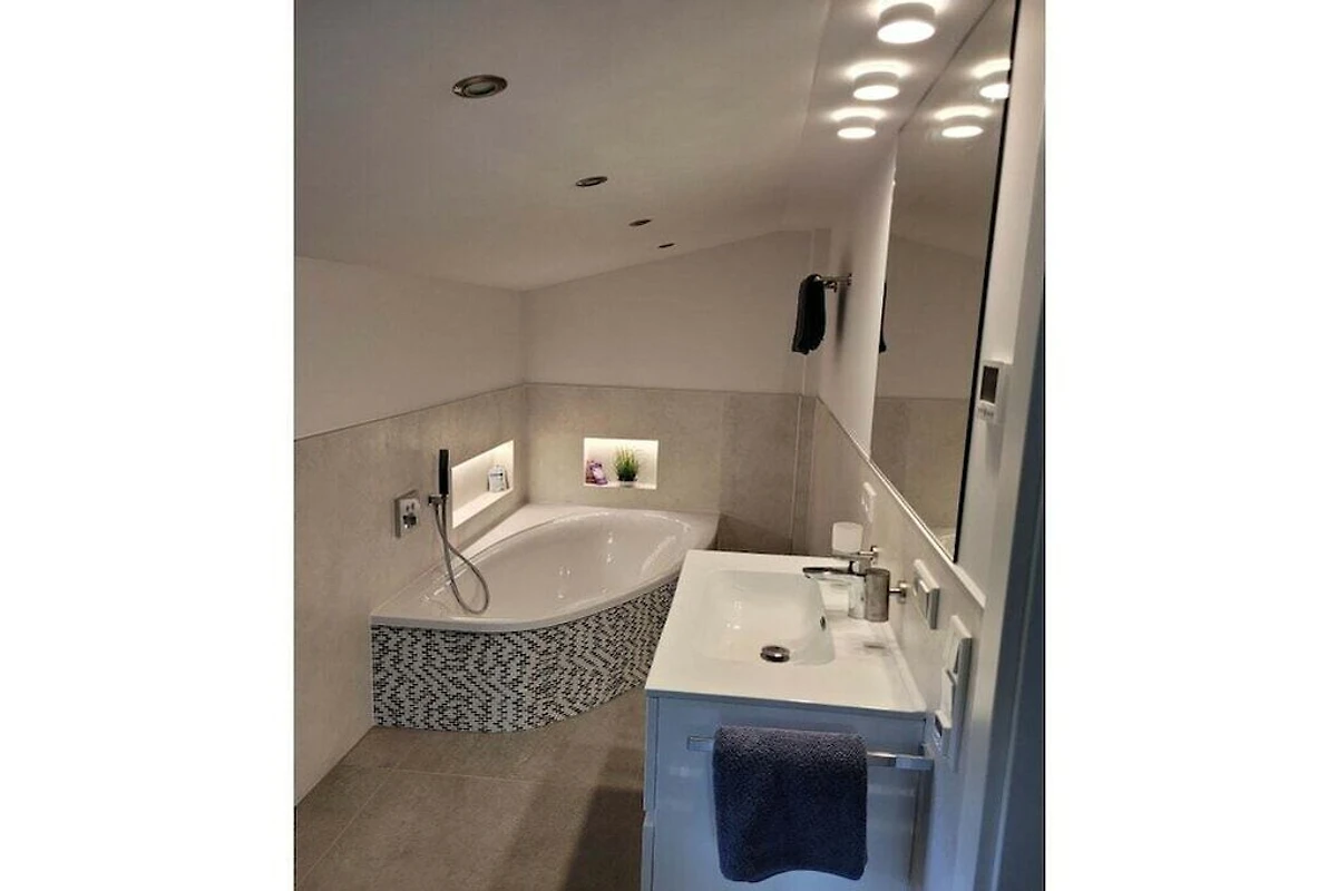 La nostra casa vacanze è accogliente, spaziosa e lussuosa, di nuova costruzione e ideale per quattro persone in 81 metri quadrati di superficie abitabile. Un'ampia cucina abitabile con finestre a tutta altezza, due camere da letto, un bagno per gli ospiti, un ampio bagno e una sauna esterna offrono tutto il necessario per un soggiorno rilassante e rigenerante! Diverse terrazze e aree salotto in riva al lago invitano a soffermarsi. Perfetta per vacanze e fughe in coppia, con gli amici o in famiglia!