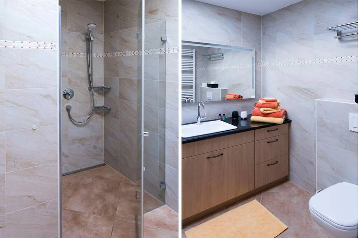 Accogliente casa vacanze con luminosa zona giorno/pranzo, tre camere da letto e due moderni bagni con doccia al piano terra. La nuova cucina completamente attrezzata offre tutto il necessario per cucinare in tutta tranquillità.