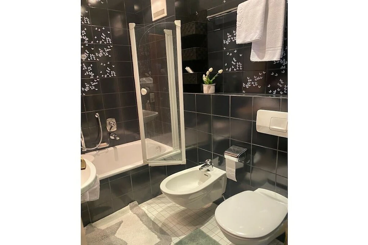Bagno privato con vasca/WC e bidet, WC separato, lenzuola e asciugamani forniti,