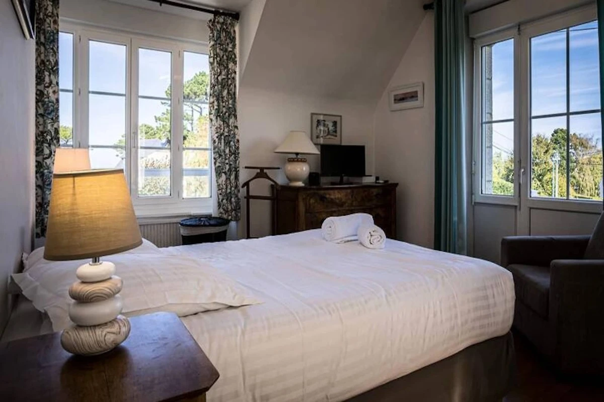 Ten bretoński dom posiada wszelkie wygody i wyposażenie niezbędne na wakacjach z rodziną lub przyjaciółmi i może pomieścić do 7 osób. -