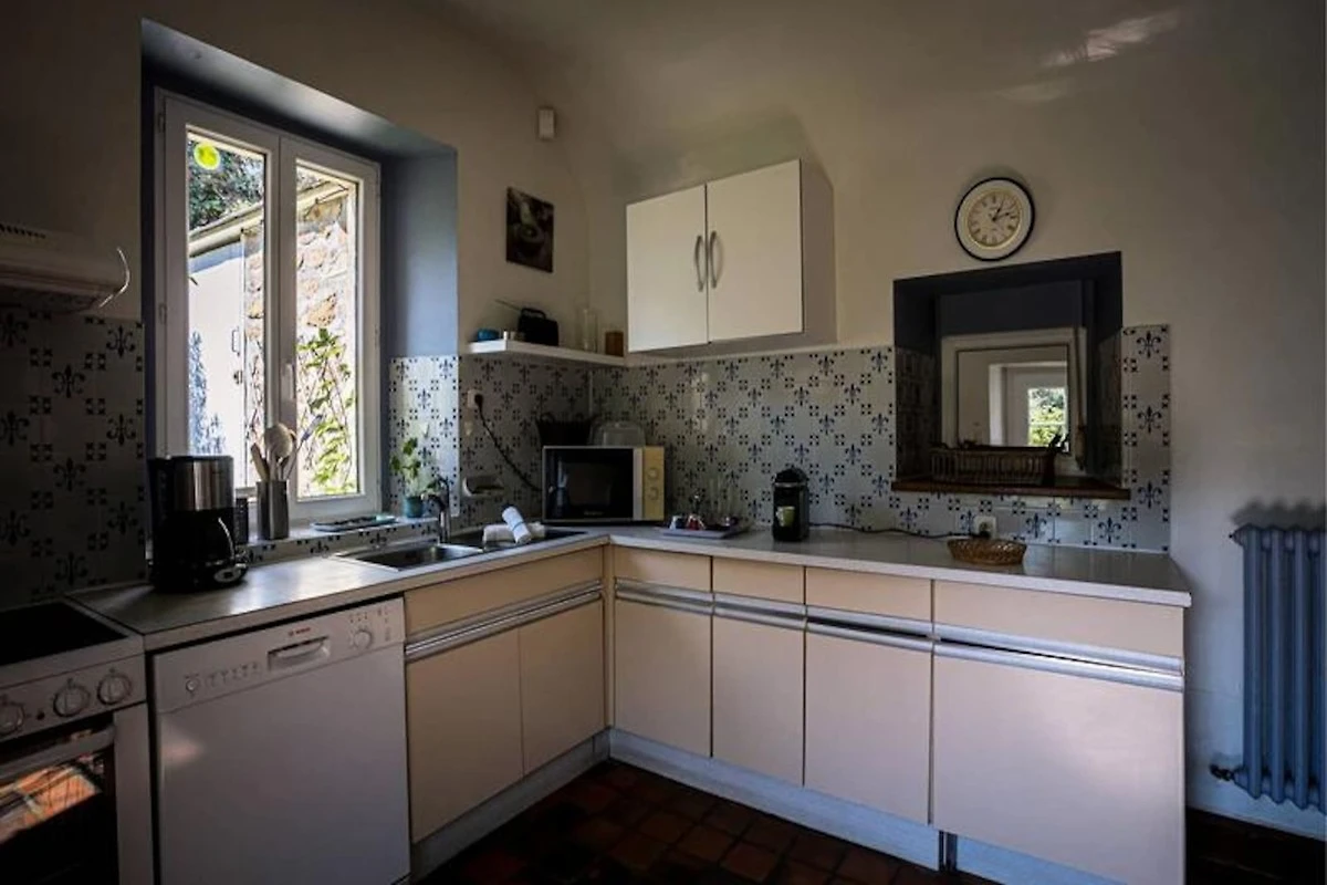 Wyposażenie: dostęp do Wi-Fi, 2 telewizory (salon i 1 sypialnia), Canalsat, Canal+, odtwarzacz DVD, zmywarka, pralka, płyta ceramiczna, piekarnik elektryczny, kuchenka mikrofalowa, lodówko-zamrażarka, ekspres do kawy elektryczny i Nespresso, frytkownica. Szczególną uwagę zwraca się na wymiary łóżek: 3 łóżka podwójne: 140x190 i jedno łóżko 120x190.