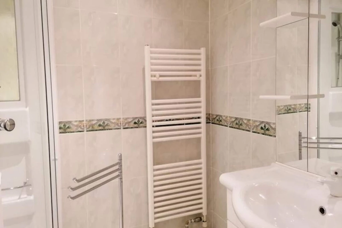 Il monolocale dispone di una zona cucina ben attrezzata con 2 piani cottura in vetroceramica, forno, microonde, frigorifero con congelatore, caffettiera elettrica, bollitore e tostapane, che vi consente di preparare i pasti con facilità. Il bagno con doccia comprende una cabina doccia e un WC. L'appartamento beneficia anche di vetrate in alluminio e di una tapparella elettrica per un maggiore comfort.