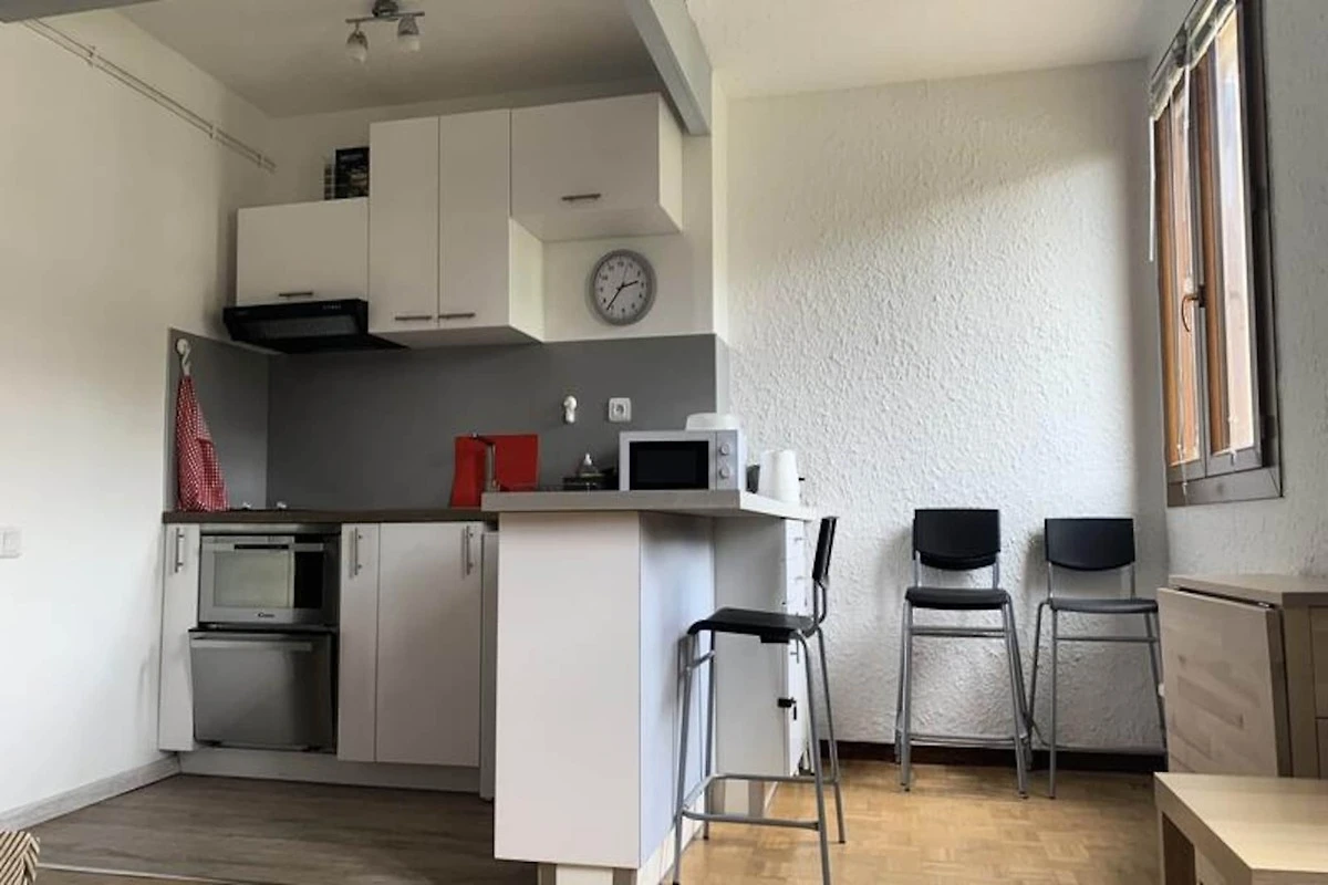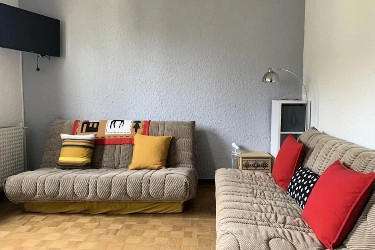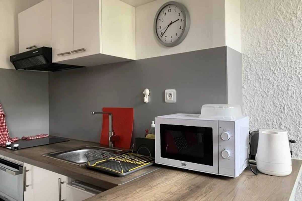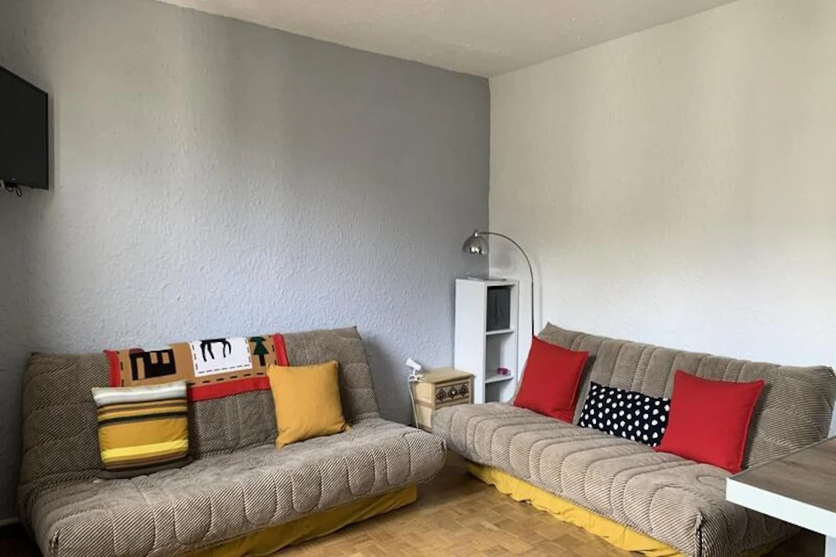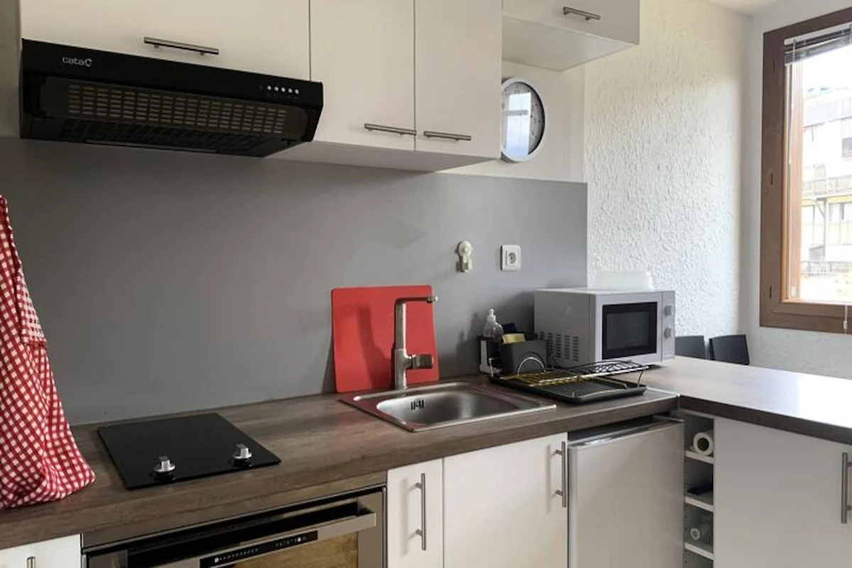 , Soggiorno(divano letto doppio, TV, tavolo da pranzo), Cucina separata(forno a microonde, ), Camera da letto(letto matrimoniale), Bagno(doccia, lavandino), ripostiglio per sci, riscaldamento