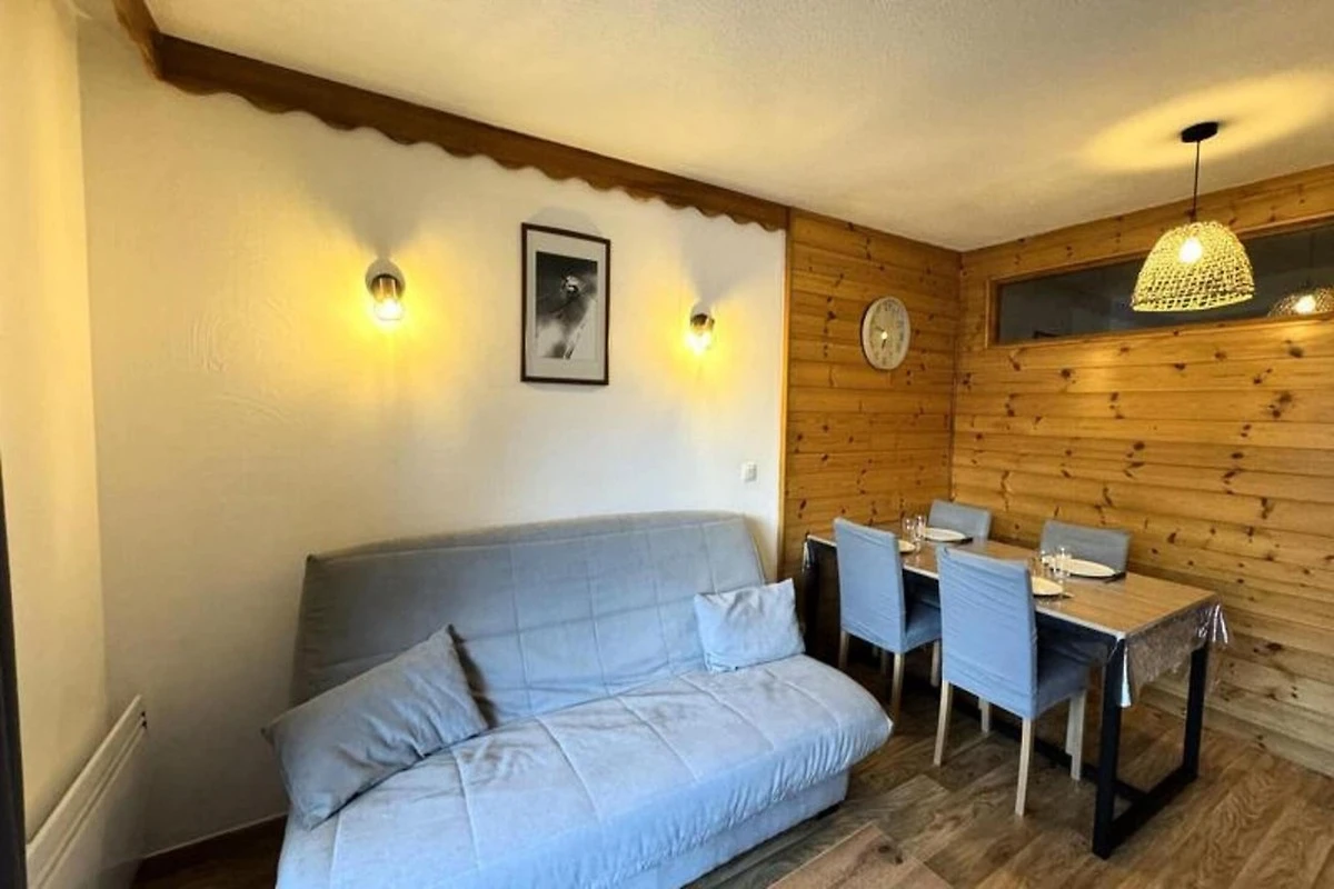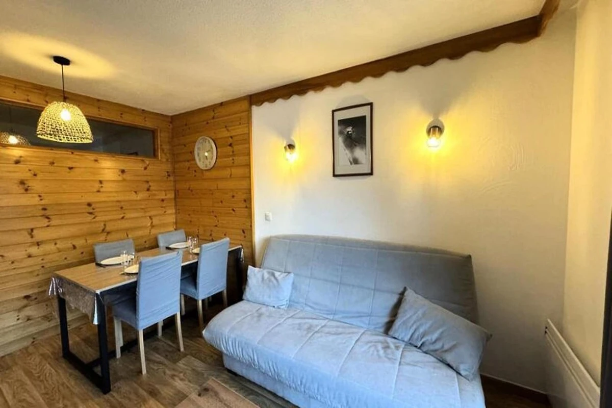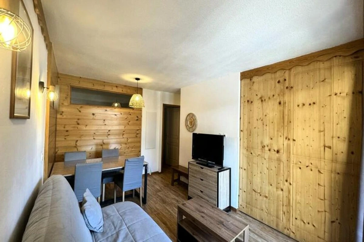 Il residence, situato ad un'altitudine di 1.800 metri nella vivace zona di Bois-Méan, offre una posizione privilegiata nel cuore della località. Questo appartamento di 2 locali di 33 m² può ospitare fino a 6 persone e offre un soggiorno confortevole con comfort moderni. L'appartamento dispone di un soggiorno esposto a sud con divano letto e televisione, una zona cucina ben attrezzata con macchinetta del caffè Senseo, tostapane, mini-forno e lavastoviglie.