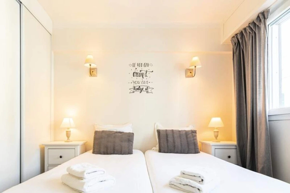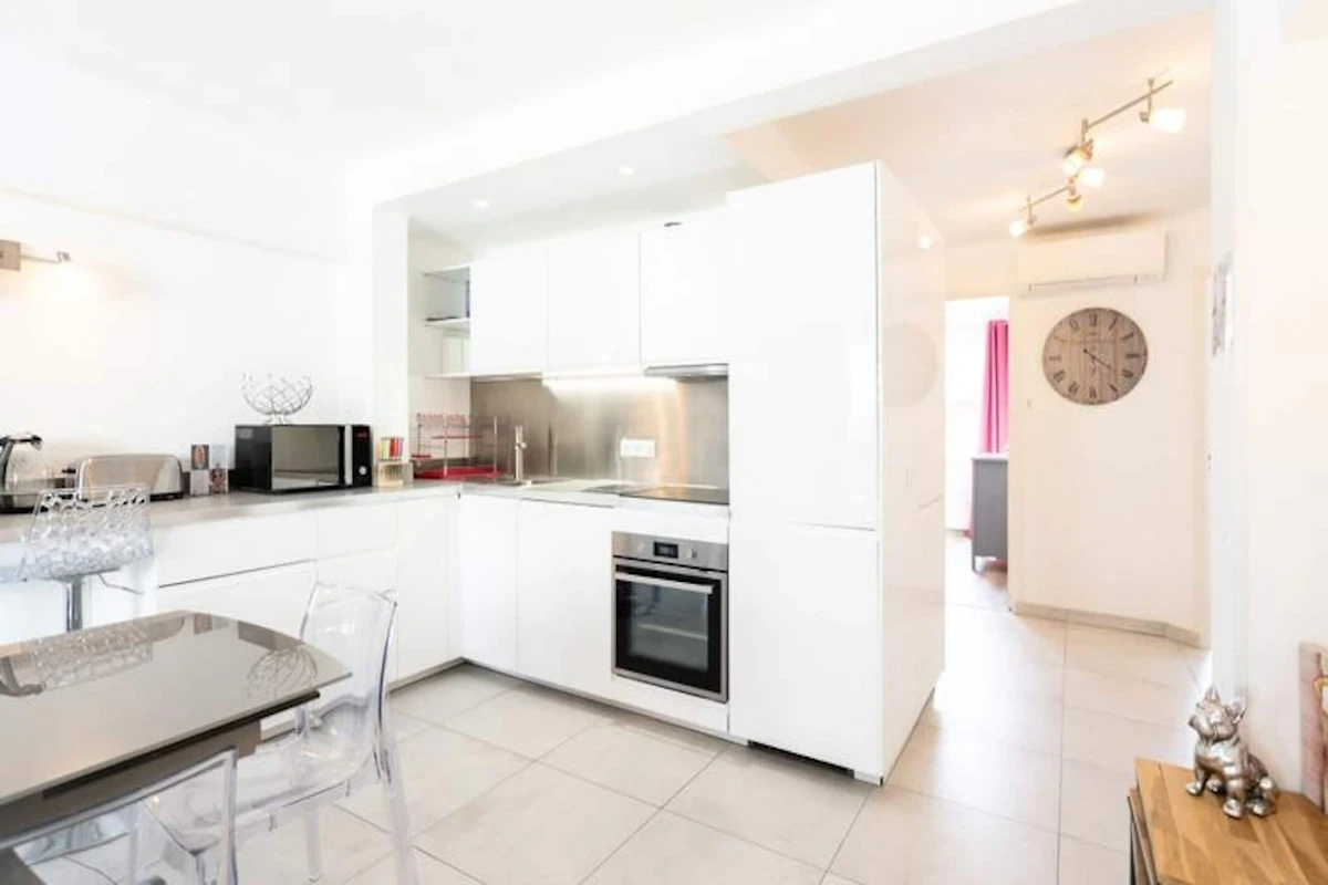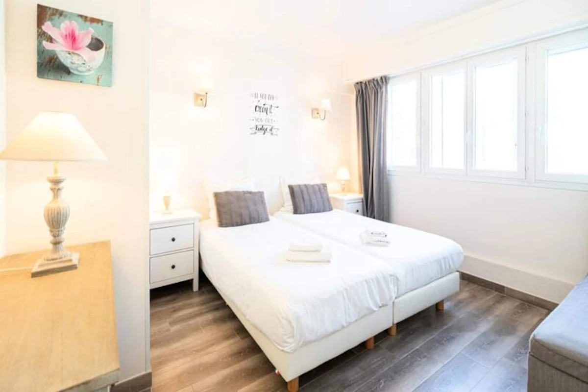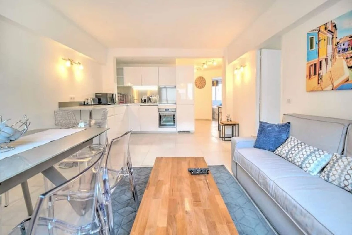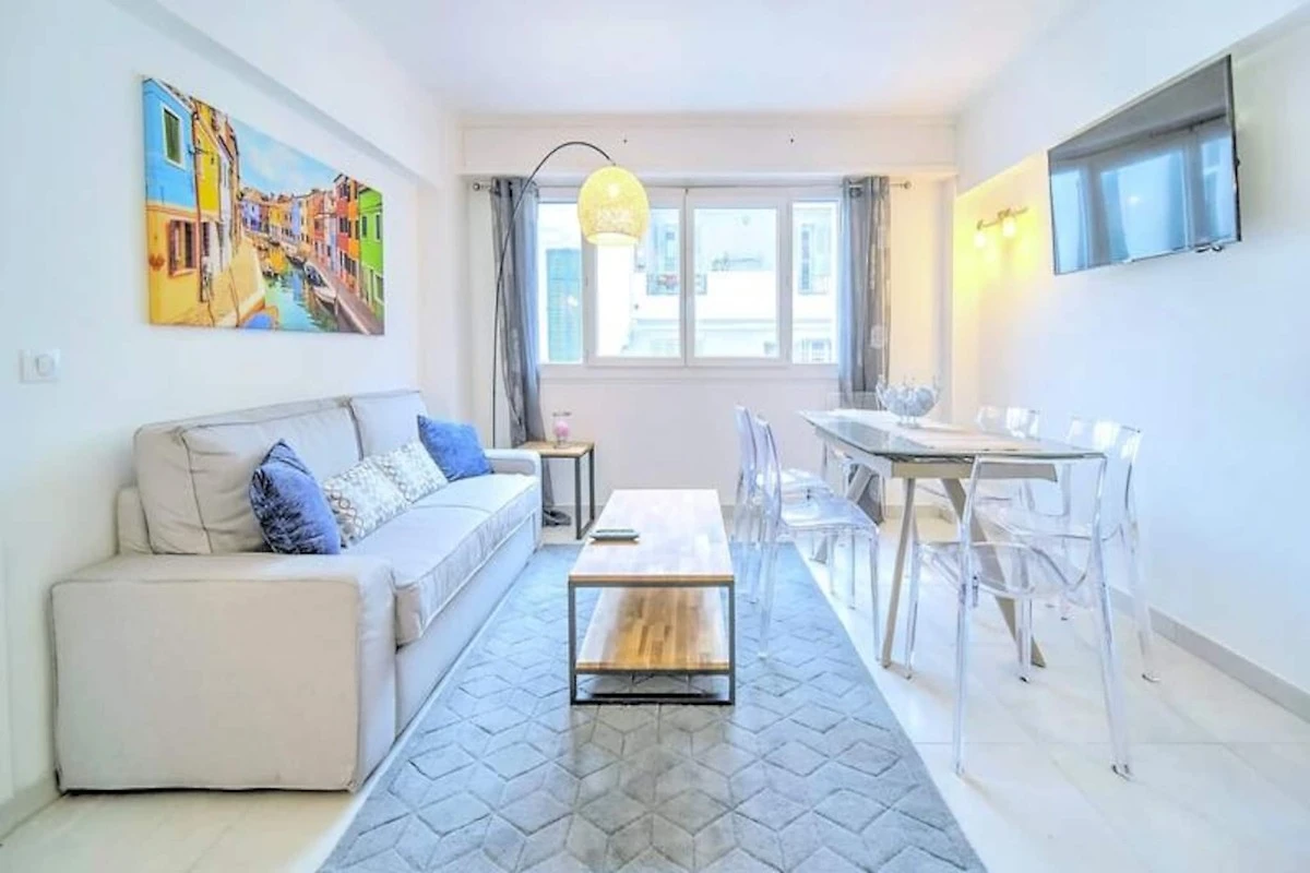 Situato a solo 1 minuto da Rue d'Antibes e a 2 minuti dalla famosa Croisette, questo appartamento offre la base perfetta per esplorare Cannes. È completamente attrezzato con aria condizionata, Wi-Fi, TV HD, letti confortevoli ed elementi essenziali per la cucina tra cui forno a microonde, lavastoviglie, bollitore e tostapane. Lenzuola e asciugamani vengono forniti, garantendo un soggiorno confortevole e senza problemi.