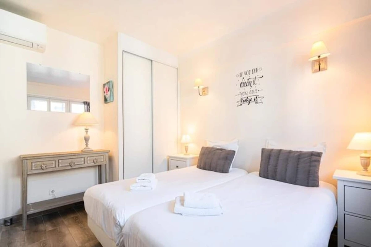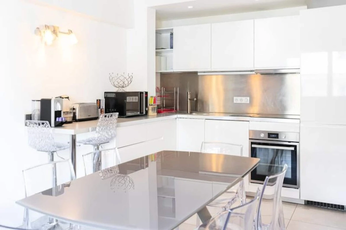 Questo superbo appartamento di 80 m², ristrutturato nel 2019, offre uno spazio abitativo ampio e luminoso nel cuore di Cannes. Con un ampio soggiorno e una cucina a vista, è perfetto per famiglie o gruppi fino a 7 persone. L'appartamento dispone di 3 camere da letto, ciascuna con ampio ripostiglio e uno spazio di lavoro, che lo rendono ideale sia per il relax che per gli affari. Due bagni moderni, uno dotato di lavatrice e asciugatrice, forniranno ulteriore comodità durante il vostro soggiorno.