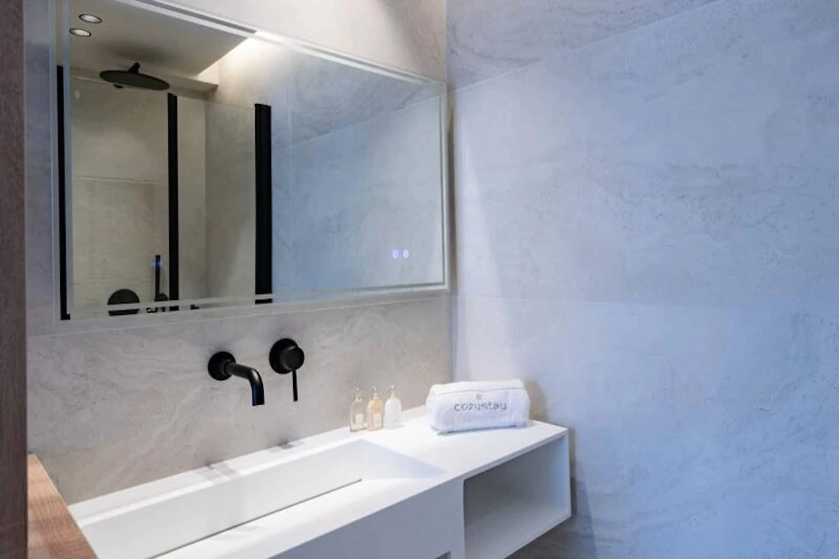 Questo appartamento di 4 locali splendidamente ristrutturato è perfettamente situato nel cuore di Cannes, a solo un minuto a piedi dall'iconica Croisette e a dieci minuti a piedi dal Palais des Festivals. Con finiture di alta qualità ovunque, l'appartamento offre un'ampia zona giorno con cucina a vista, che lo rende ideale sia per il relax che per l'intrattenimento. Può ospitare fino a 6 persone con tre camere da letto, ciascuna dotata di letti matrimoniali e bagno privato, oltre a due bagni per gli ospiti per una maggiore comodità.