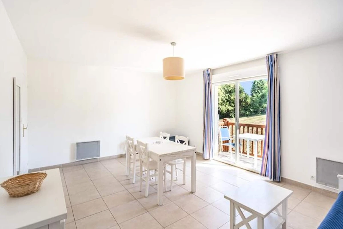 Questo luminoso appartamento al piano terra offre un rifugio confortevole per un massimo di sei persone con le sue due camere da letto e una zona soggiorno ben arredata. La prima camera dispone di un letto matrimoniale, mentre la seconda di due letti singoli. Il soggiorno offre ulteriori posti letto con un letto estraibile e un divano letto. Gli ospiti potranno godersi il relax all'aperto nel giardino privato con esposizione a sud, e completa la proprietà un posto auto dedicato. L'appartamento offre un ambiente adatto alle famiglie, completo di accesso a una piscina interna riscaldata e una piscina per bambini durante i mesi estivi.