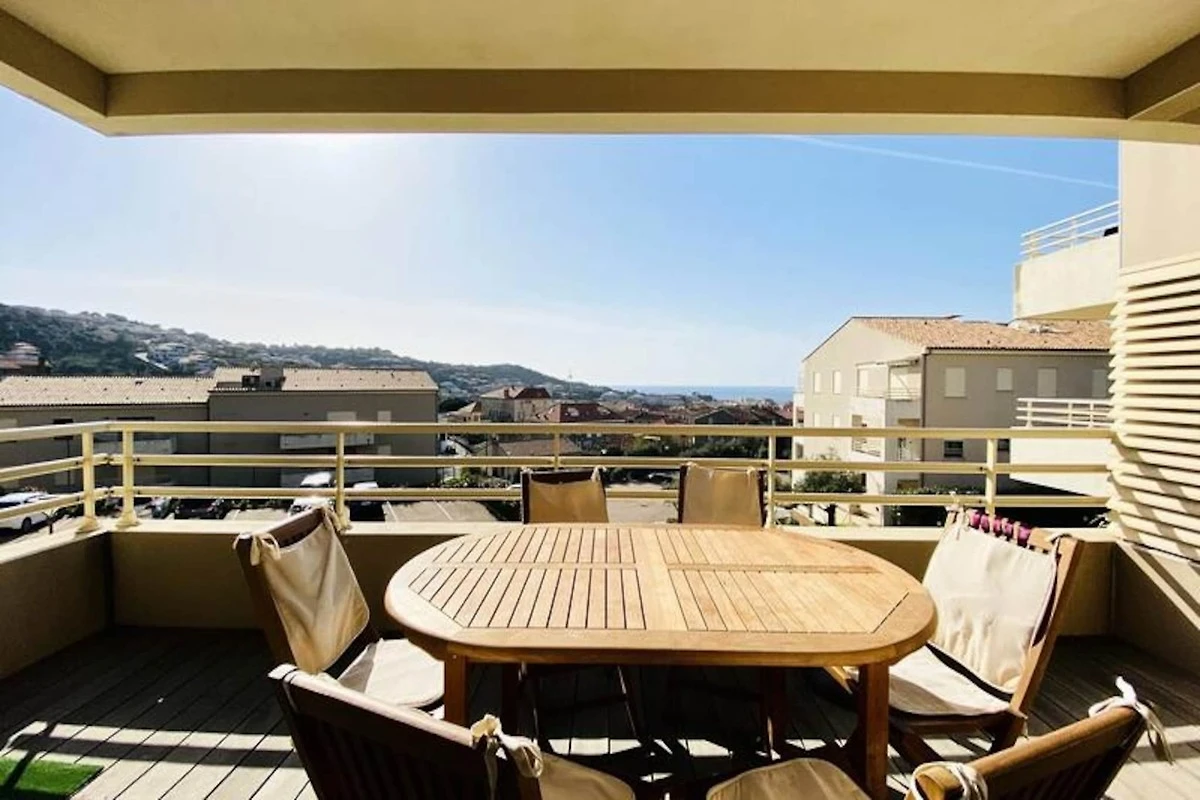 La cucina dell'appartamento ט completamente attrezzata con frigorifero, piano cottura, forno, microonde, macchina per il caffט e tutti gli utensili necessari per preparare i pasti. La zona giorno si apre su una terrazza arredata con splendida vista sul mare, perfetta per cenare all'aperto o semplicemente per rilassarsi. Per maggiore comoditא, la struttura offre servizi di pulizia dopo il soggiorno, con linee guida per garantire che l'appartamento sia pronto per l'ospite successivo.
