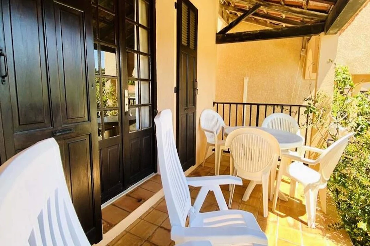 La cucina a vista completamente attrezzata, situata nel soggiorno, facilita la preparazione dei pasti, mentre il bagno è dotato di lavatrice per una maggiore comodità. L'appartamento offre un rifugio tranquillo con splendide viste sul mare, sul giardino e sulla piscina. Viene fornita la biancheria e lo spazio è progettato per il comfort con aria condizionata e tutti i comfort necessari per un soggiorno senza problemi.