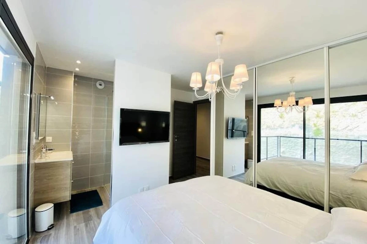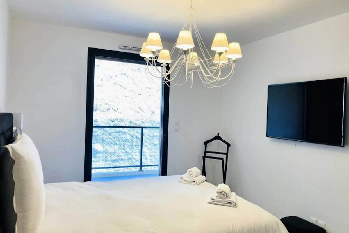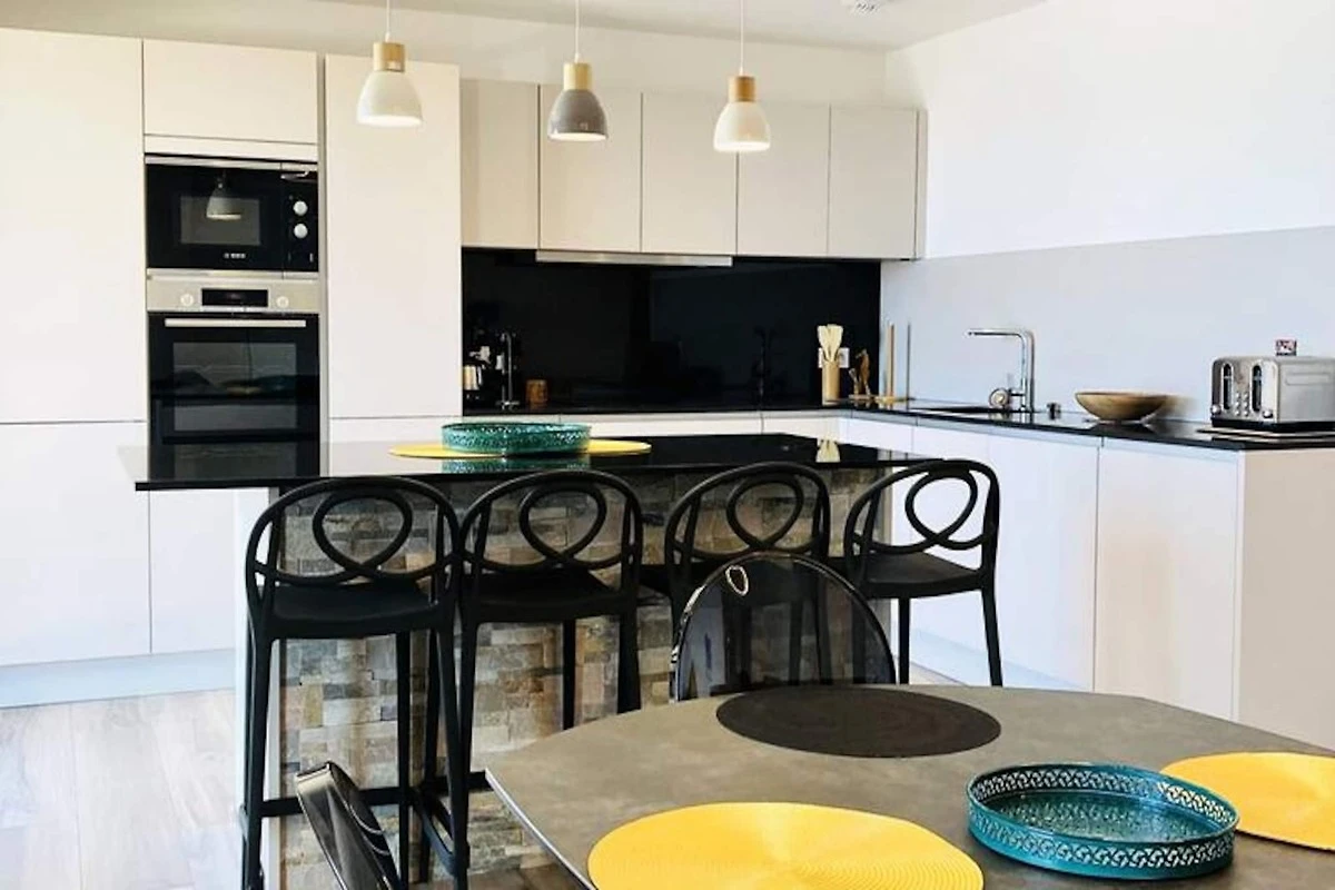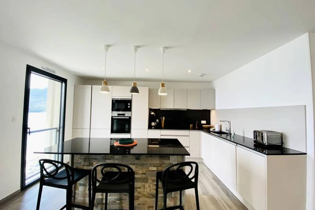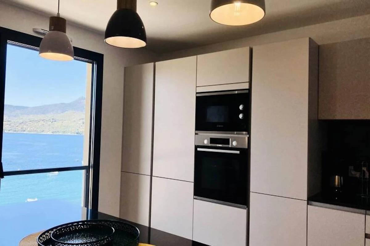 All'interno, l'appartamento dispone di una cucina a pianta aperta e di una zona pranzo, completamente attrezzata con elettrodomestici moderni. La cucina comprende frigorifero, forno, piano cottura, microonde e tutti gli utensili necessari. Una lavanderia aggiunge comodità, mentre i bagni sono spaziosi e moderni. Due terrazze aggiuntive offrono spazi esterni per godersi il panorama e rilassarsi. Per servizi aggiuntivi, il concierge è disponibile per assistere con richieste su misura come consegne di generi alimentari o noleggio di barche.