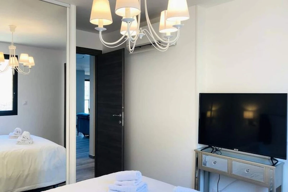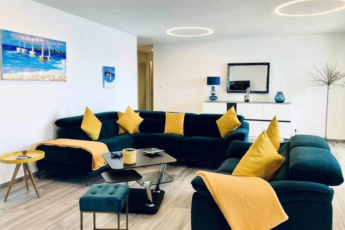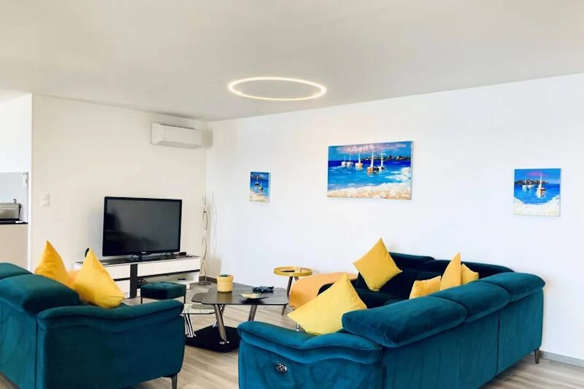 Questa splendida struttura fronte mare offre un soggiorno spazioso e lussuoso con 3 bellissime camere da letto, ognuna dotata di bagno adiacente, TV a schermo piatto e ampio armadio. L'appartamento è completamente climatizzato per il massimo comfort e viene fornita la biancheria, comprese lenzuola e asciugamani. Gli ospiti potranno usufruire di un soggiorno con area lounge, ampio divano, TV a schermo piatto e accesso ad una terrazza con vista sul mare. È disponibile un parcheggio privato e la connessione Wi-Fi gratuita ti assicura di rimanere connesso durante tutto il soggiorno. Si noti che non sono ammessi animali domestici e feste e all'arrivo è richiesto un deposito di € 2.000.