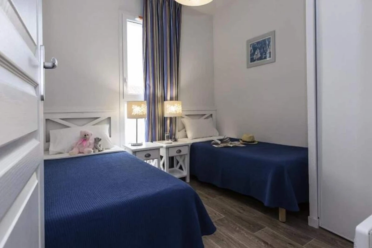 Questi appartamentini bifamiliari offrono una sistemazione confortevole per un massimo di sei persone. Ciascuno dispone di un soggiorno con divano letto estraibile, una camera con due letti singoli e una camera con un letto matrimoniale. Il residence dispone di una piscina riscaldata semicoperta e di una vasca per bambini (aperta da metà aprile a fine settembre), un'area giochi per bambini, una sala fitness, un hammam (a pagamento), una cabina per trattamenti (a pagamento), ping pong, un pista da bowling e un campo da pallavolo. Gli animali domestici sono ammessi (con condizioni e costi).