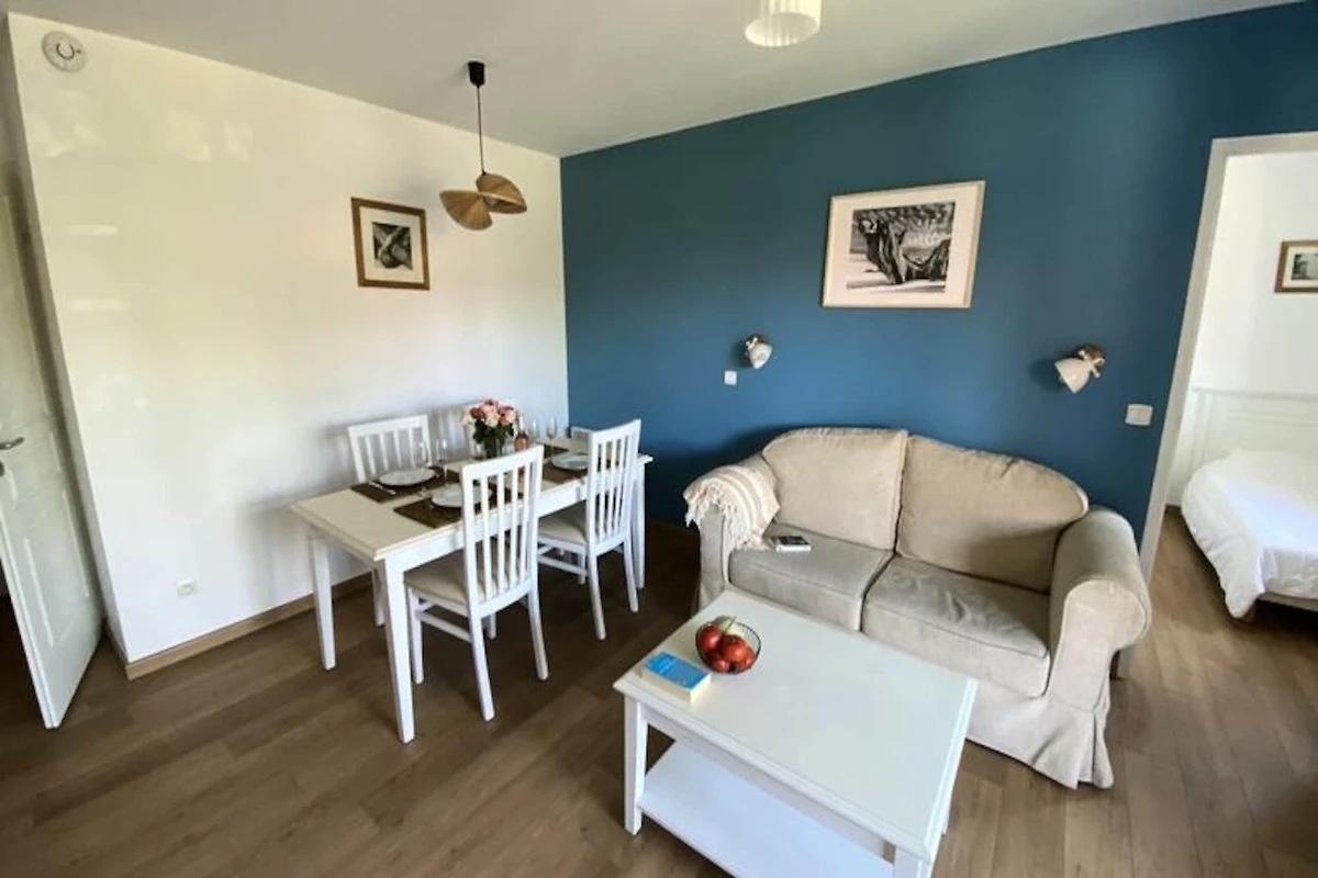 La struttura vanta un'area acquatica di 1000 m² con una piscina esterna riscaldata, una piscina interna riscaldata con vasca per bambini, una piscina olimpionica e vasche idromassaggio, garantendo divertimento e relax per tutte le età. Che vogliate prendere il sole, fare qualche vasca o rilassarvi nella sauna con accesso settimanale gratuito, il residence offre l'ambiente perfetto per ricaricarvi dopo una giornata di esplorazione. Gli alloggi sono progettati con cura per il comfort, offrendo sistemazioni a un piano con terrazze o balconi, cucine completamente attrezzate, accoglienti zone giorno e camere da letto pensate per famiglie o coppie.