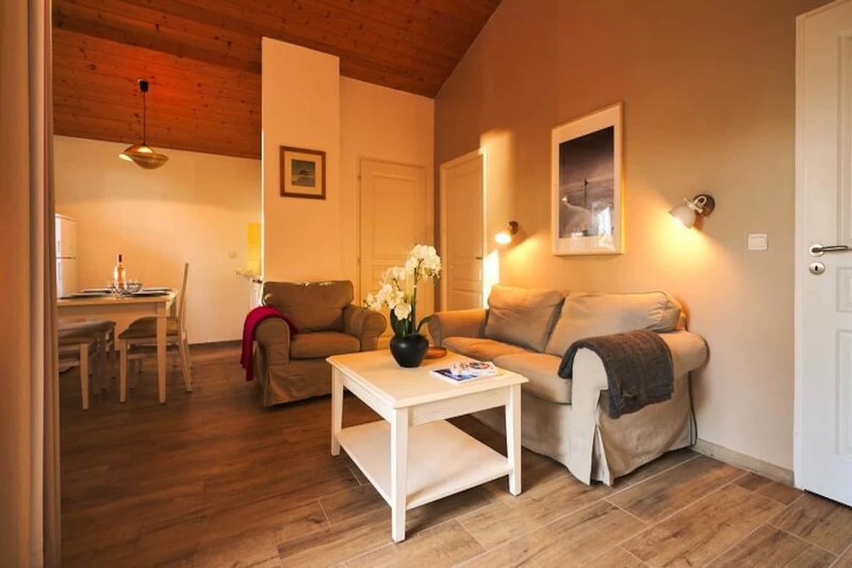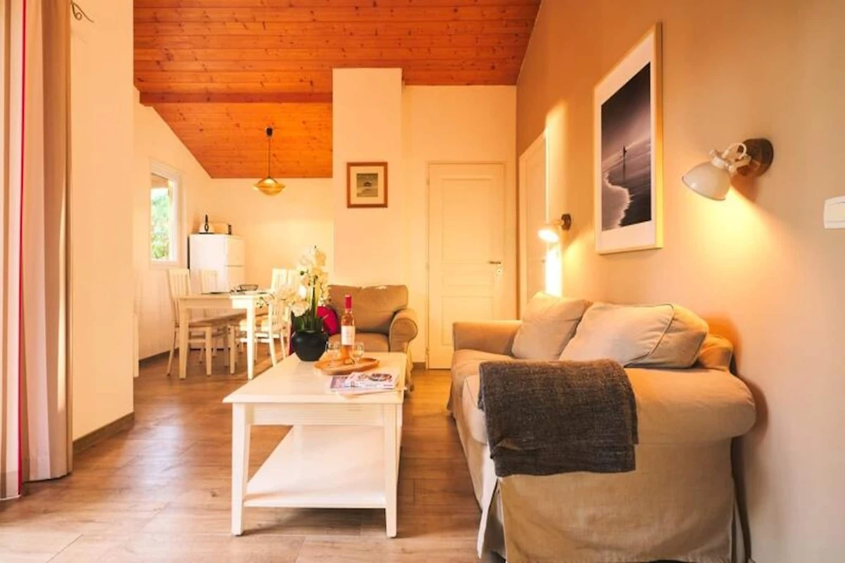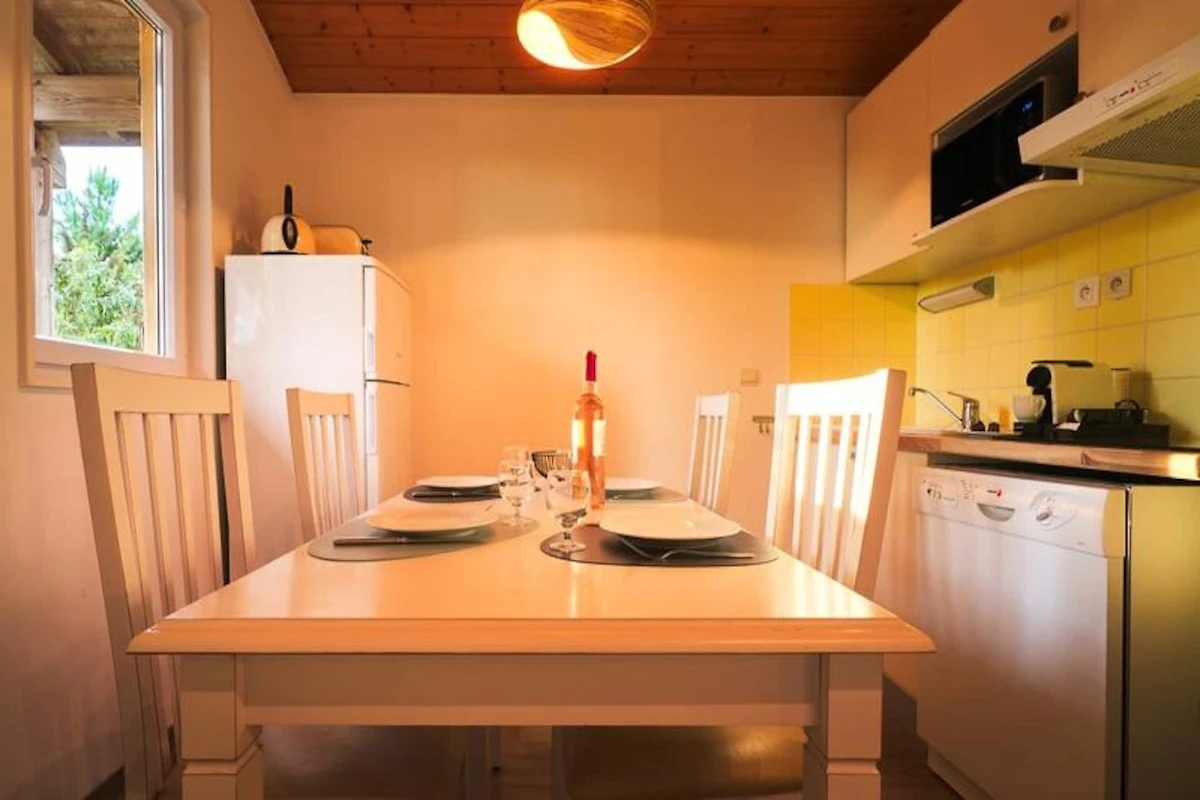 Sulle tranquille rive del Lago Parentis, circondato dalle rigogliose pinete della costa delle Landes, sorge il Residence Les Cottages du Lac 3*. Questo tranquillo rifugio vi invita a immergervi nella bellezza della natura, godendo di comfort moderni e servizi eccezionali. Che siate alla ricerca di relax o di avventure all'aria aperta, questo paradiso lacustre offre il perfetto equilibrio tra entrambi. Svegliatevi con il dolce suono del lago e il profumo fresco del pino, dando il tono a una giornata rigenerante. Il residence vanta sistemazioni a un piano progettate con cura, ognuna con il proprio spazio esterno. All'interno, troverete un accogliente soggiorno, un angolo cottura ben attrezzato e tre camere da letto che possono ospitare fino a sei persone. La disposizione comprende una camera matrimoniale, una camera doppia e una camera con letti a castello, rendendolo ideale per famiglie o gruppi. L'area acquatica è un punto di forza, con una piscina esterna riscaldata, una piscina interna riscaldata con idromassaggio, una piscina per bambini e una piscina per il nuoto. Dopo una giornata di esplorazione, rilassatevi nella sauna, dove una sessione a settimana è inclusa nel soggiorno. Ulteriori servizi come Wi-Fi, stazioni di ricarica per auto elettriche e opzioni che accettano animali domestici garantiscono un'esperienza confortevole e pratica. \n\nUscite e scoprite le meraviglie della costa delle Landes. Le vicine piste ciclabili offrono percorsi panoramici attraverso la foresta, mentre il lago di Biscarrosse-Parentis offre opportunità per il windsurf, la pesca e il relax in riva al lago. La strada di accesso privata alle spiagge del lago permette di godersi facilmente le acque incontaminate e le rive sabbiose. Per le famiglie, il parco giochi e le attività all'aperto promettono divertimento senza fine. \n\nScegliete il Residence Les Cottages du Lac 3* per una fuga indimenticabile dove natura, comfort e avventura si fondono in modo naturale. Che stiate esplorando i sentieri profumati di pini o semplicemente prendendo il sole a bordo piscina, questa incantevole struttura renderà ogni momento indimenticabile.