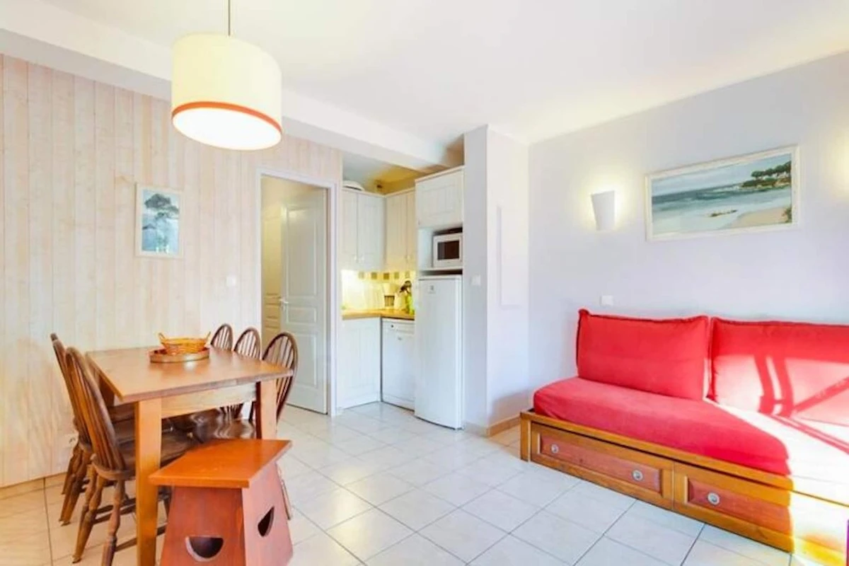 Situato a 1,5 km dalle splendide spiagge di Moliets, l'appartamento offre un facile accesso al campo da golf a 27 buche e offre una varietà di attività come surf, bodyboard e kart. Esplora i sentieri escursionistici nella foresta delle Landes de Gascogne o visita la riserva naturale Courant d'Huchet per ammirare la variegata fauna selvatica. Il villaggio offre anche caffè, mercati e un vivace fascino locale.