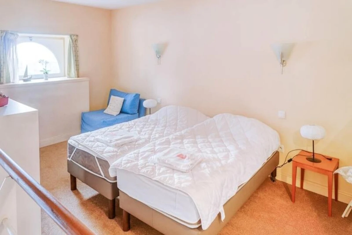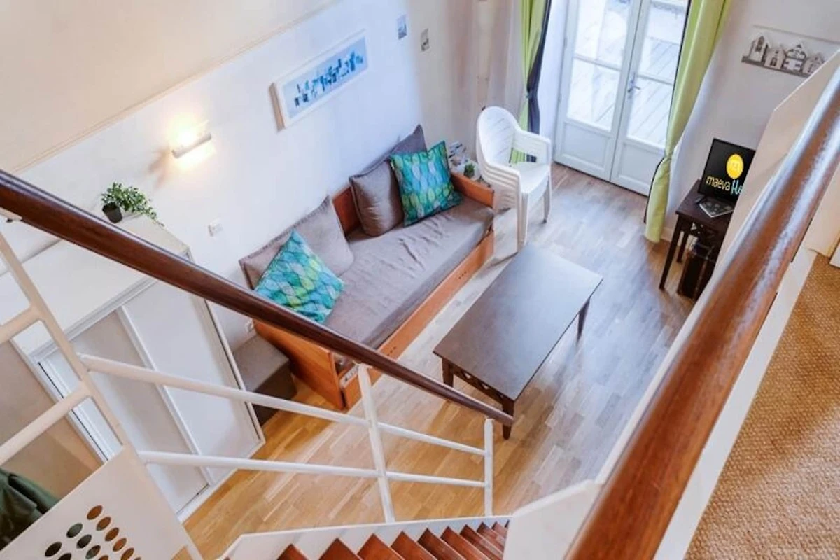Ihre Ferienwohnung umfasst: 1 Wohnzimmer, 1 Zwischengeschoss, 1 Küche, 1 Badezimmer und Parkplatz.