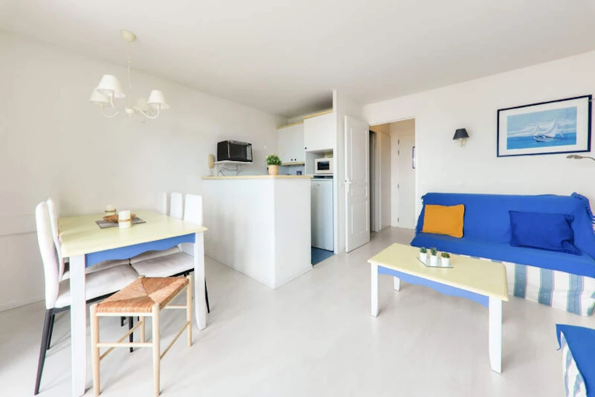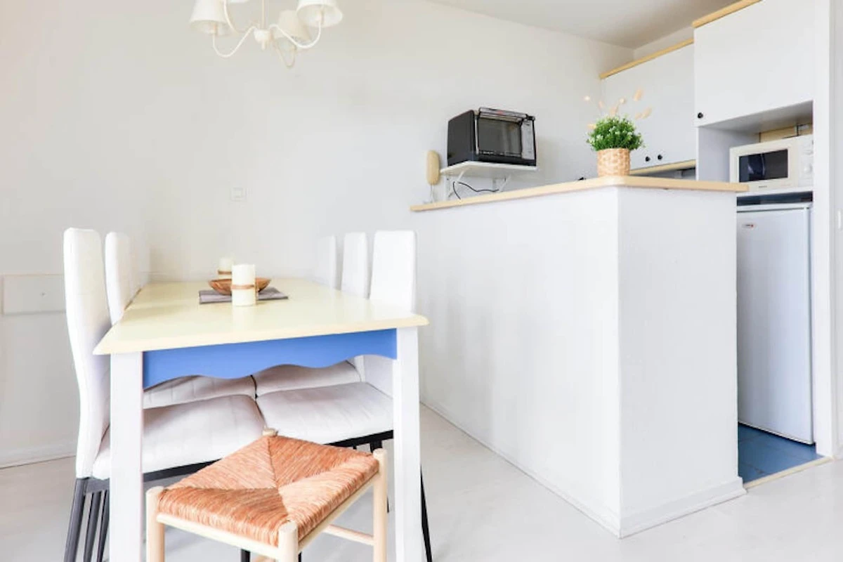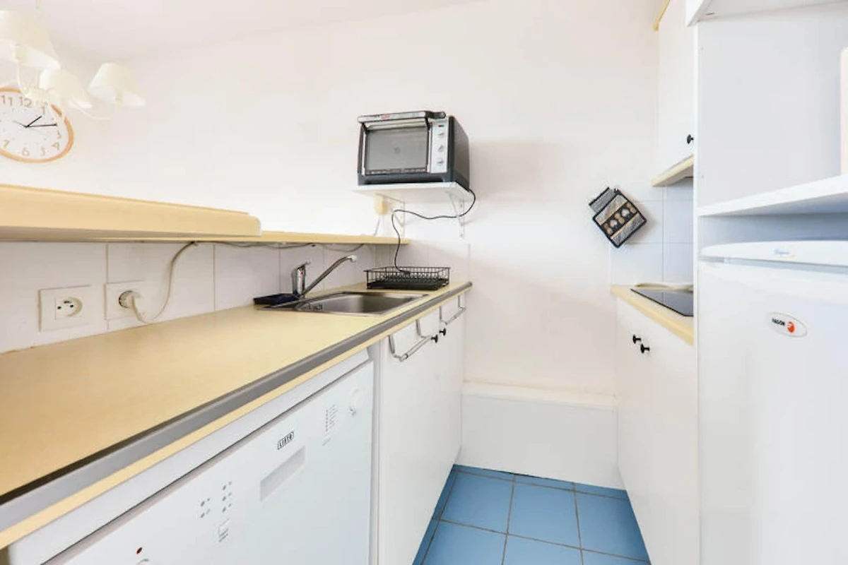 L'appartamento esposto a ovest vanta un balcone con vista sul mare e una luminosa zona giorno. La cucina in stile americano è completamente attrezzata con lavastoviglie, frigorifero e macchina da caffè, perfetta per preparare i pasti. I servizi aggiuntivi includono asciugamani elettrici, deposito e WiFi opzionale e noleggio biancheria. Questo appartamento ben posizionato offre comfort moderni per una rilassante vacanza al mare.
