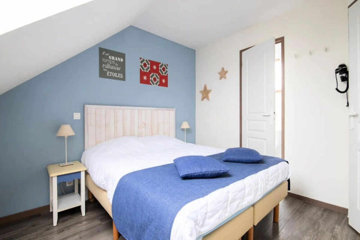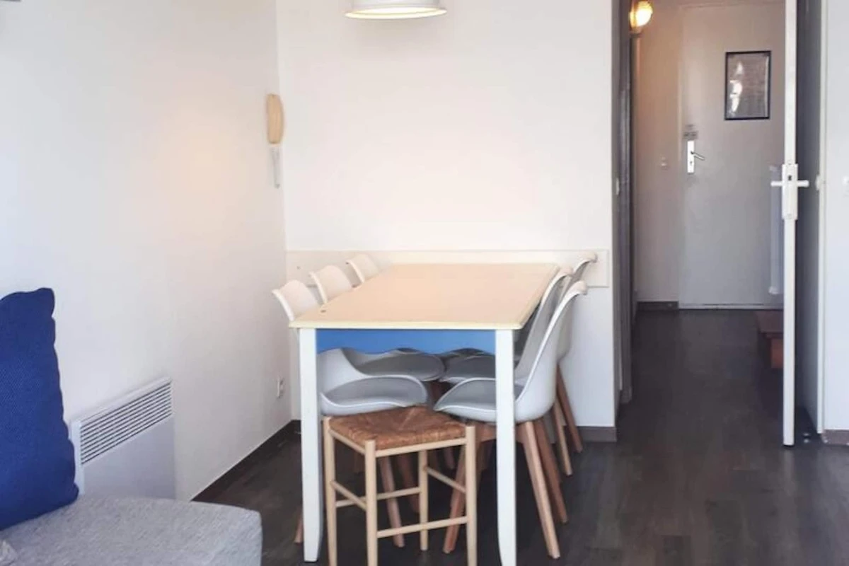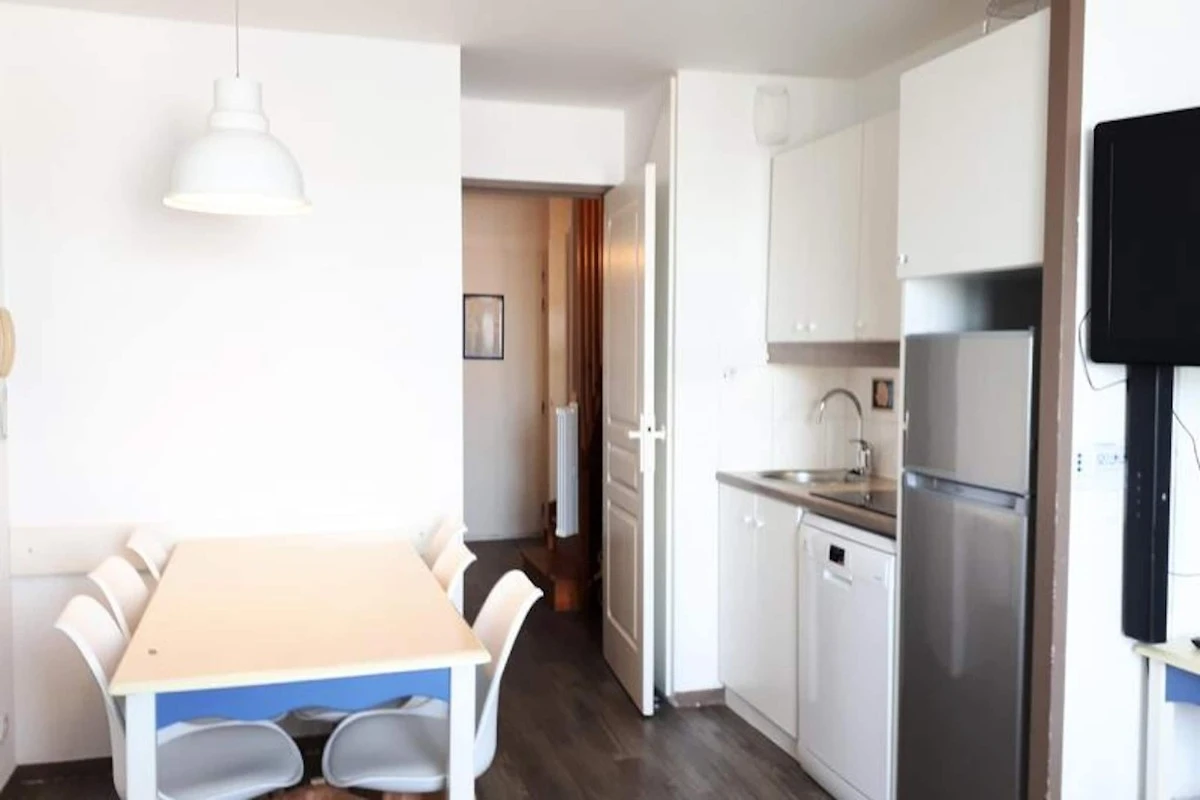 Questo appartamento luminoso e spazioso offre una vacanza confortevole per un massimo di 7 persone ad Arzon, in Francia. L'appartamento dispone di un soggiorno con divano letto convertibile, una camera con letto matrimoniale e una zona cabina con letti a castello. Godetevi pasti rilassanti nella cucina in stile americano o sul balcone arredato con vista sul porto.