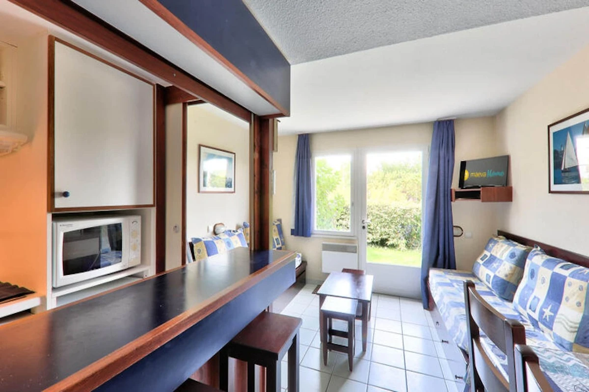 Nur 300 Meter vom 1 km langen Strand von Fogeo entfernt erwarten Sie komfortable, voll ausgestattete Apartments. Entdecken Sie das große Freizeitangebot vor Ort, vom Schwimmen bis zum Beachvolleyball, 200 Meter von den Restaurants und Geschäften von Port Crouesty entfernt. Oder genießen Sie das Vergnügen eines Thalassotherapie-Wochenendes in der Bretagne, dank des direkten Zugangs zum Thalassotherapie-Zentrum Miramar Crouesty!